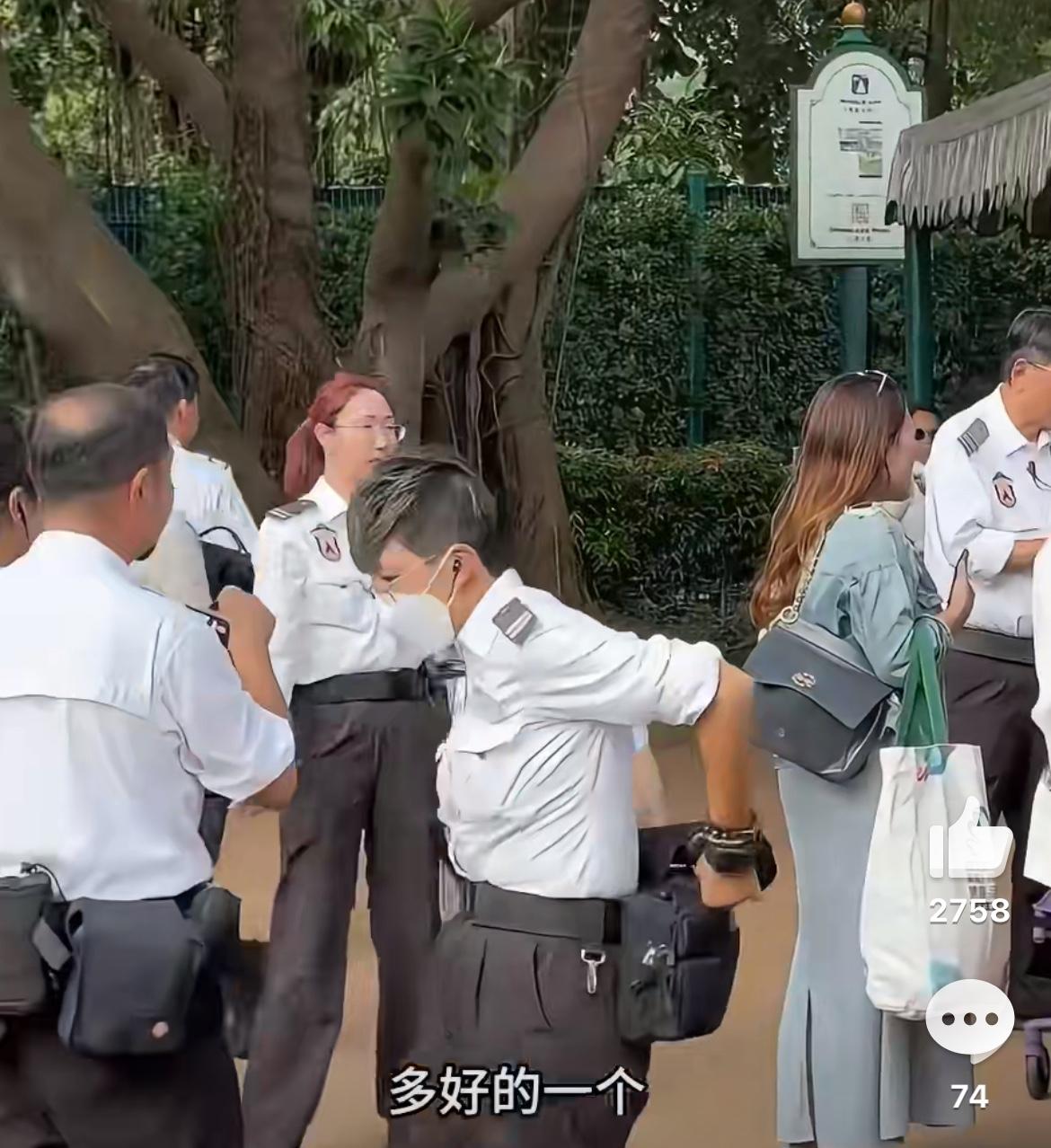 香港迪士尼,一名男子身穿鬼子衣服戴着佩刀,俄罗斯女子看到后非常不满“为什么要在中国穿这个?”她和她的中国男友一起向乐园工作人员投诉,工作人员表示会立马处理,派了十几个安保人员围住了这名男子进行交涉,在我们的地盘上就不应该穿这种衣服,为港迪的迅速处理点赞