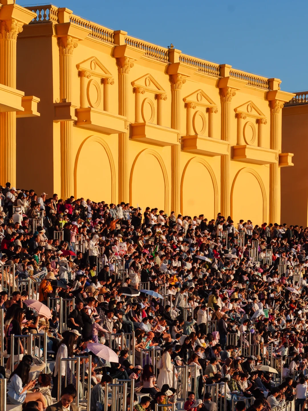 -\n天呐!银川览山公园这人气是要逆天吗?🔥\n明明不是节假日,现场却比春运还热闹!\n罗马柱前排长队,观景台挤满人,\n连草坪都\"长\"满了野餐垫~\n-\n✨ 魔幻现场:\n▫️每个角落都在上演\"假装在欧洲\"大片\n▫️日落时分人流量达到巅峰\n▫️听到最多的话:\"这里确定是银川不是罗马?\"\n-\n💡 真实建议:\n✔️下午4点后建议打车,停车场一位难求\n✔️拍照要快准狠,不然背景全是路人甲\n✔️带足水和防晒,排队时你会感谢我\n✔️东侧的亲水平台也很出片哦\n-\n📍览山公园:银川金凤区亲水大街与沈阳路交叉口向西450米\n