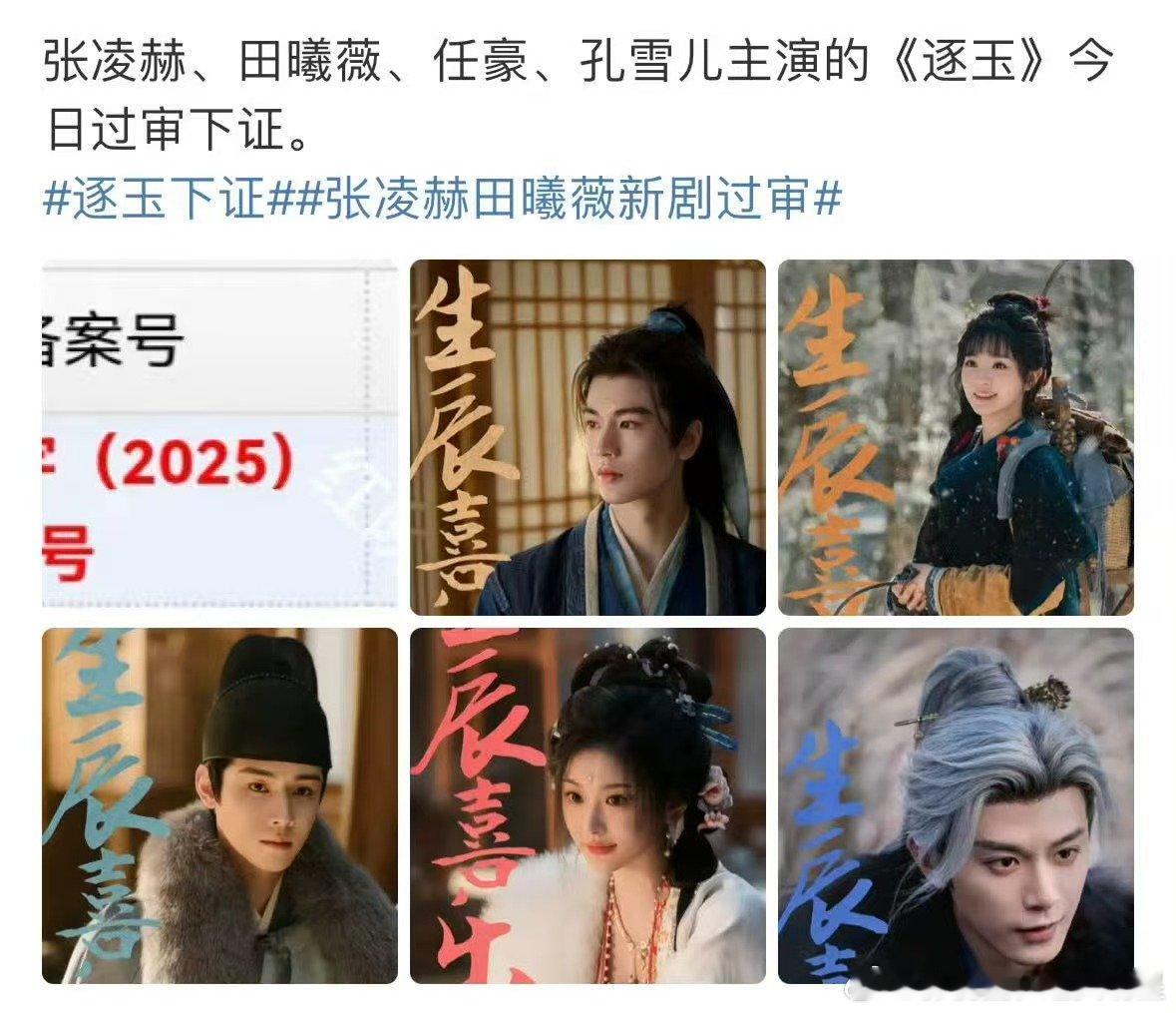 张凌赫田曦薇新剧过审下证了