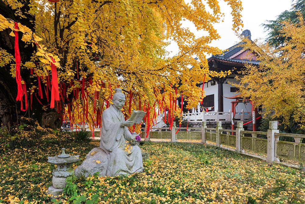 南京有好几处赏银杏的地方,玄武湖梧桐大道,毗卢寺,灵谷寺,栖霞寺,清凉山公园等等,拍照都很出片。 但是有一处非常特别,那就是江北的古惠济寺,自从识得古惠济寺的三棵距今1500多年的古银杏树,我就每年都想去探访一下。 据说这三棵银杏树是南朝昭明太子在此读书时种下的。 三棵银杏树高都超过20米,一棵名为“撑天覆地”,冠幅巨大,可供千人纳凉。一棵名为“千年垂乳”,得名于这棵树巨大的像乳房一样的气根,这两棵树的树干粗壮,需要七个成人才能合围。 第三棵树更为神奇,名为“雷击复苏”,这棵树遭遇雷击后着火,烧了几天几夜,树干都烧空了,看起来完全没救了。没想到过了几年,这棵树又发出新芽,焕发新生,现在去看这棵树树干中空,顶部却枝叶茂盛昂首向天。 每次去看这三棵银杏树,都带给我震撼感,还有些许感悟,想着这历史长河中,天道轮回,人之渺小,还有什么放不下的呢。 三棵树最佳观赏期在11月底12月初,自驾比较方便。