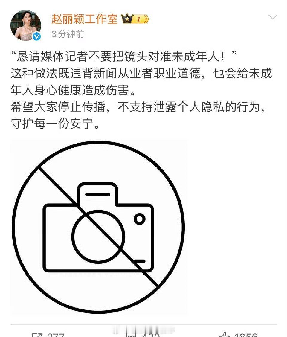 赵丽颖工作室再次发文恳请媒体记者不要把镜头对准孩子