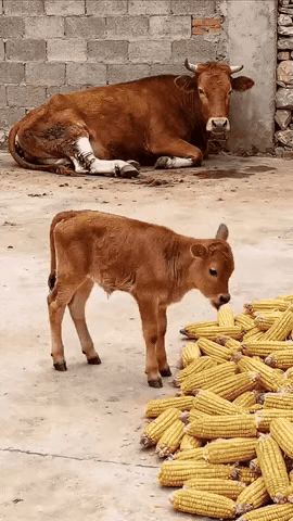 牛妈妈腿受伤了,躺在墙角动弹不了。刚出生几个月的小牛犊跑过去,把玉米棒子叼起来喂给妈妈吃。这一幕看得人好感动。 小牛见妈妈嚼得费劲,竟把玉米棒子在地上来回踩碎,再用嘴把碎粒拱到牛妈妈嘴边,像哄小孩似的轻轻蹭它的脸。原以为小牛只是贪玩,结果半小时里,小牛往返料槽六次,每次都挑最饱满的玉米,连掉在地上的碎渣都舔干净,生怕浪费一点“营养品”。“出生才几个月,就知道反哺,对牛妈妈关心和爱护。 牛犊天生有“群体护母”本能,可这般细致“反哺”只是第一次见。心理学者顺势科普:依恋不是人类专利,生命最初的爱就是“你养我小,我护你老”。农场主随后透露,小牛自打出生就没离开过母牛,连夜里睡觉都把头靠在妈妈腿上,“相依为命”。 “它们不缺吃的,缺的是不被宰的命运。——牛妈妈伤好后,母子一起“退休”,送进领养牧场颐养天年。网友笑哭:“这年头,连牛都靠孝顺逆天改命!牛妈妈腿受伤 小牛挑玉米喂妈妈 玉米段喂牛
