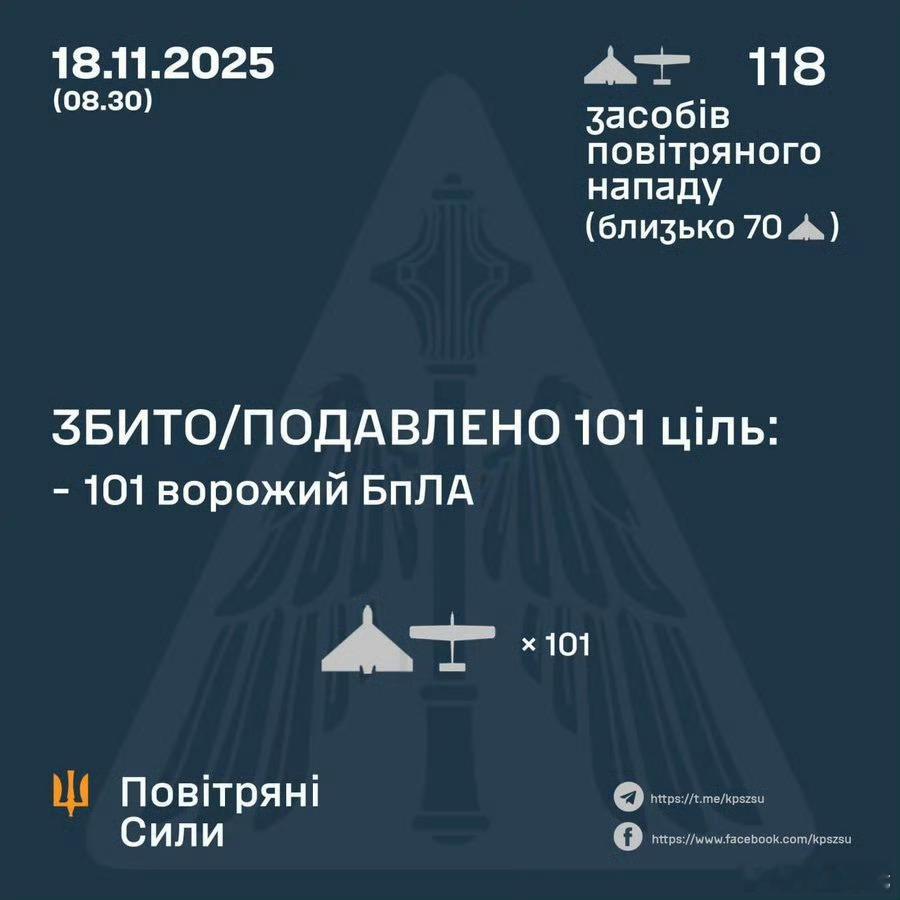 乌军防空部队成功拦截来袭的俄军114架无人机中的101架,4枚弹道导弹未能拦截。
