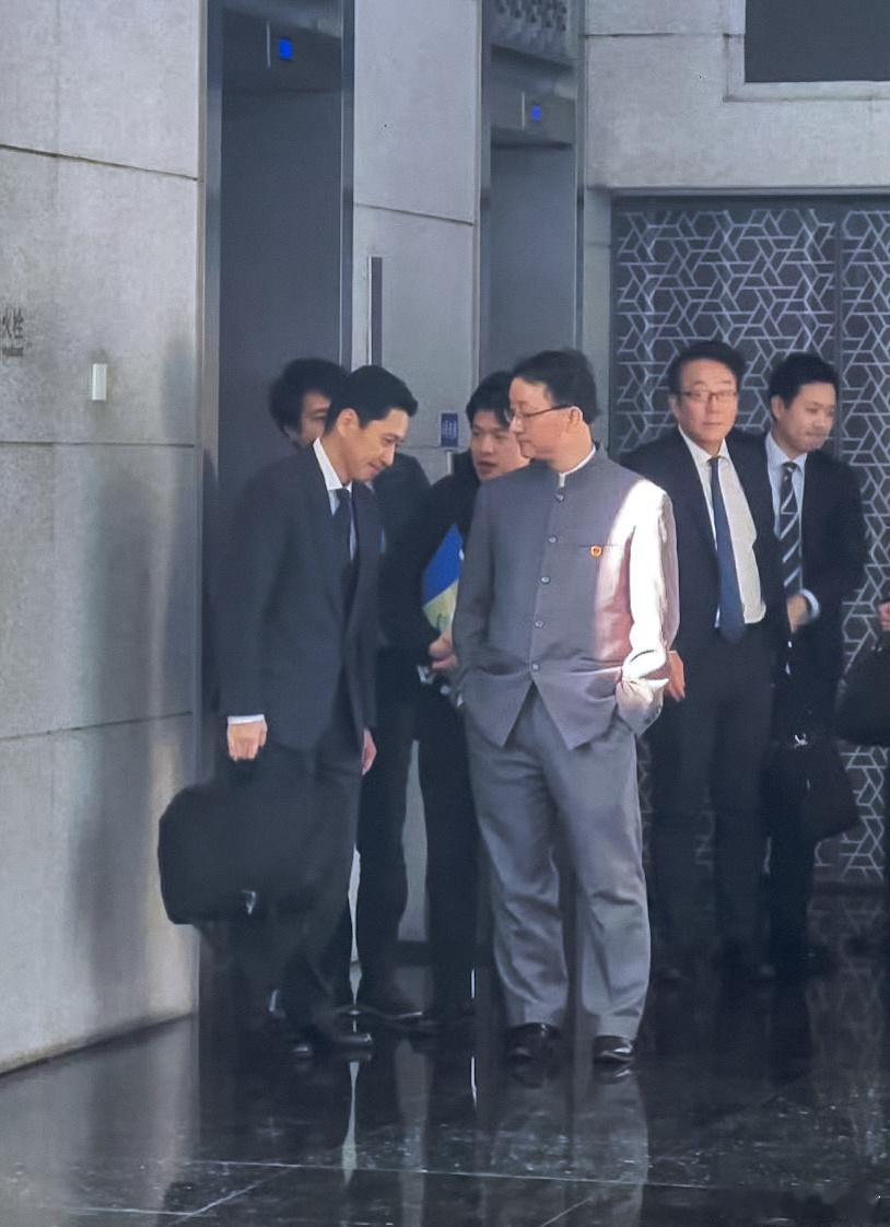 下午2点左右,金井正彰离开外交部,着中山装的是亚洲司刘劲松司长。图片选的格外到位…