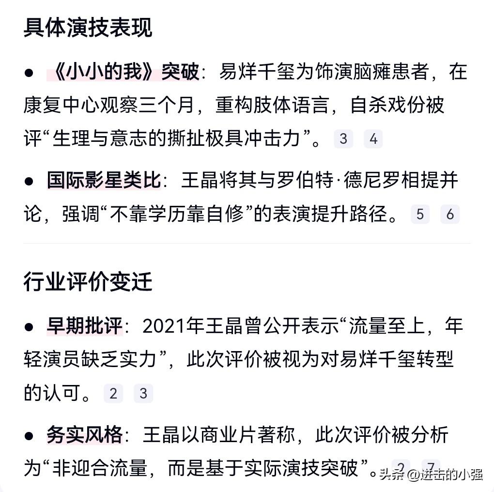 呵呵,真的是笑了。 11月18日我在网上看到这么一个视频。 王晶说易烊千玺是更文艺的周润发。 这我就不敢苟同了,每个人都是独一无二的,易烊千玺就是易烊千玺,周润发就是周润发。 根本就没有可比性。 而且易烊千玺未来的成就不一定输给周润发。 易烊千玺饰演的脑瘫患者,那真的是下了功夫的。 演的是惟妙惟肖。