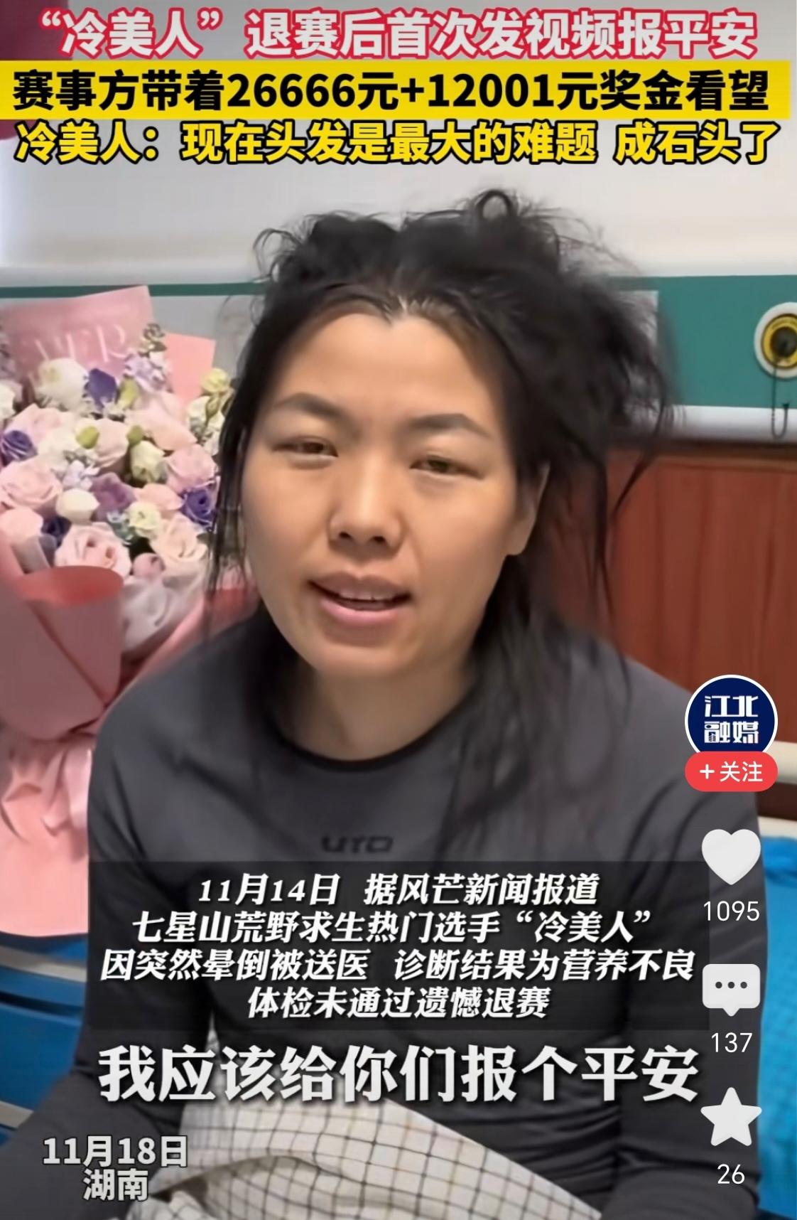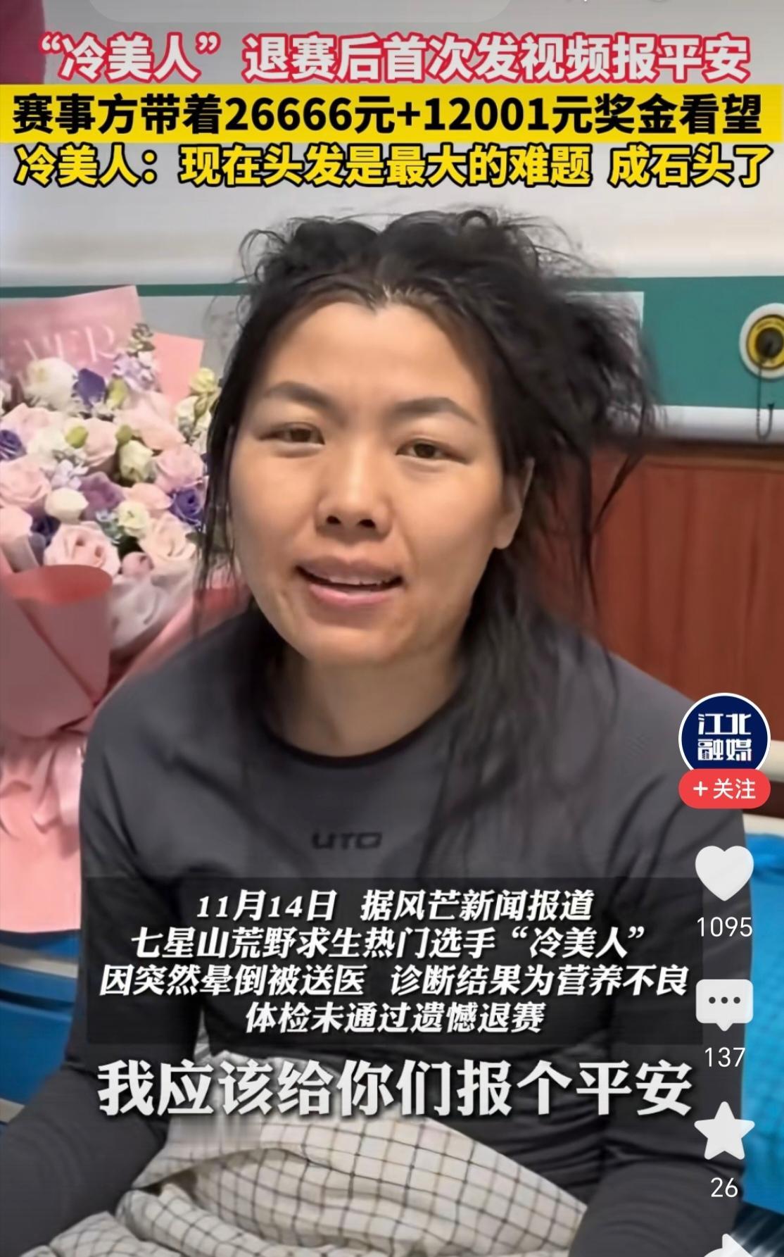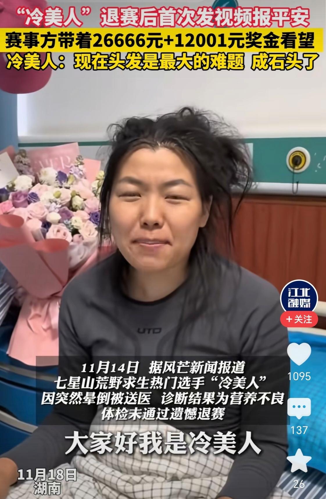 冷美人就只是一个名字, 不是说她很美,[呲牙]各花入各眼。 冷美人醒过来了, 气息气色好了许多。 都是睡了美容觉的缘由? 醒来后的冷美人, 头发成了一个鸡窝, “这是个难题啊!头硬成石头了!” 可以找洗头发供应商打一个广告[呲牙][呲牙]很合时宜!