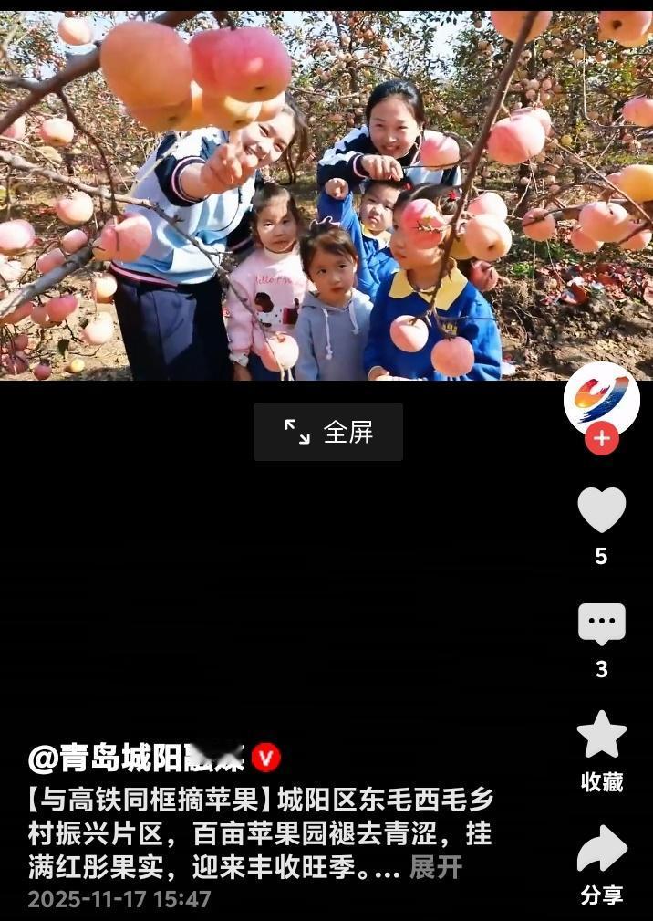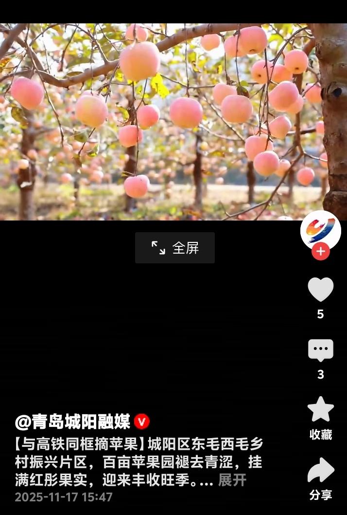 青岛城阳百亩苹果园变身网红打卡圣地!高铁脚下摘红富士成潮流 亲子情侣蜂拥而至拍照晒圈必火 (来源:@青岛城阳融媒) 秋日的风掠过青岛城阳的田野,百亩苹果园里,沉甸甸的果实压弯枝头,像一串串红灯笼在阳光下摇曳。这片位于东毛西毛乡村振兴片区的果园,如今成了城市人逃离喧嚣的桃花源。人们提着竹篮穿梭树下,手指轻轻一拧,苹果落入掌心,溅起的清甜香气仿佛能洗去一身疲惫。 不远处,高铁列车如银龙呼啸而过,与果园里弯腰采摘的身影构成一幅动静交融的画卷。有游客举着手机追拍列车,镜头里是红彤彤的果实与飞驰的时代符号同框。这种奇妙的碰撞,让平凡的农事活动瞬间升级为充满诗意的都市奇遇。 “苹果脆得像初雪,甜得像蜜糖!”带着孩子来的周女士抹去额角的汗珠,掰开苹果时汁水顺着手腕流淌。她笑着说超市里的水果永远缺这份鲜活。旁边的小男孩踮脚够到低垂的枝桠,发现每颗苹果都带着露珠,像是果树偷偷珍藏的星星。 果园深处,白发老人扶着树干眺望高铁,眼底映出两种丰收:一种是土地馈赠的硕果,一种是时代馈赠的速度。他们见证过这里从荒芜到繁盛,如今看着城里人因采摘而重拾对土地的眷恋,皱纹里绽开的笑意比苹果更甜。 年轻情侣把采摘变成约会新范式。女孩踮脚摘果时,男孩悄悄用镜头定格她发梢的金色光晕。他们把苹果垒成心形拍照,身后高铁划过成为天然背景板。这种不需要滤镜的美好,让朋友圈收获了近百个艳羡的点赞。 果园管理者看着熙攘人群感慨,这里本是一片普通农田,因乡村振兴的春风而蜕变。他们坚持生态种植,让苹果自然熟成,咬下去是三十年前的味道。如今果园日均接待千人,周边村民开起农家乐,钱袋子比苹果更红火。 暮色渐浓,满载而归的游客在田埂上相遇,互相展示竹篮里的战利品。有人迫不及待啃起苹果,咔嚓声此起彼伏,像是秋天最动听的交响乐。孩子们举着苹果追逐,笑声惊起枝头麻雀,落羽混着果香飘向远方。 当城市生活令人窒息,这片土地用最朴素的方式治愈人心。摘苹果不只是收获果实,更是收割一份久违的宁静。那些藏在枝叶间的红宝石,等着下个周末继续点亮平凡生活。 青岛身边事