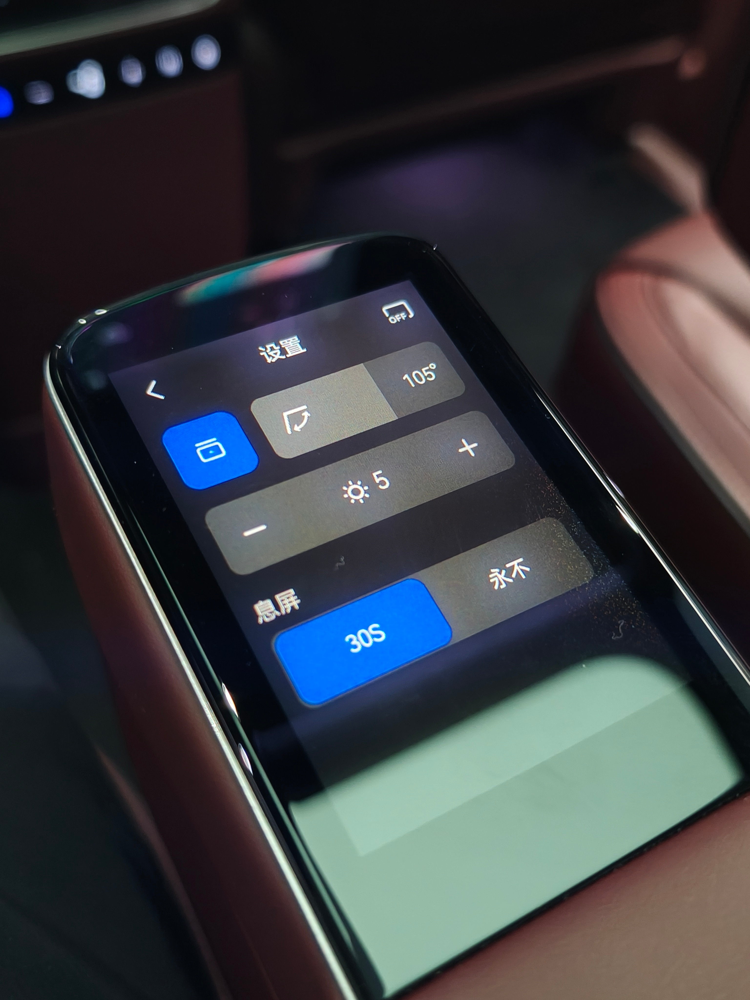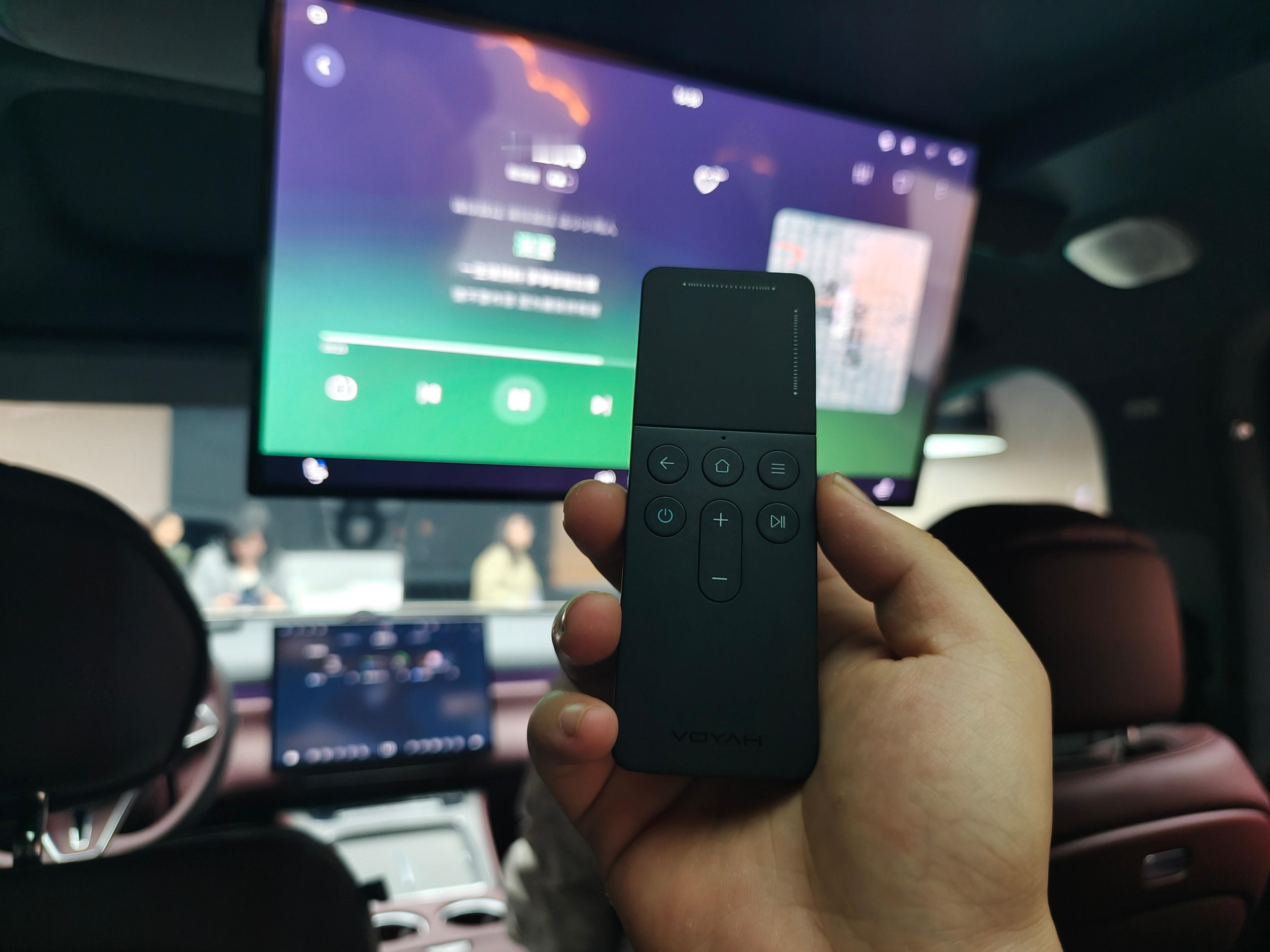 岚图泰山豪华感给的很足,但可不是花架子,它在很多体验方面都有恰到好处的设计。比如这个吸顶屏,尺寸够大而且角度是电调的,不用手势操作,直接用带触摸板的遥控,躺在零重力座椅上也能轻松操作屏幕,简单又优雅。