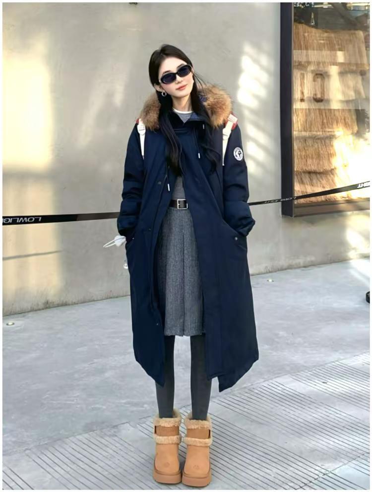 姐妹们快冲这件派克服🥰。长款过膝大毛领派克服来啦!2025冬新款韩系宽松加厚羽绒棉衣,时尚又保暖!大毛领超吸睛,穿上它,你就是冬日时尚女王!
