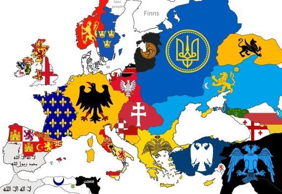 第一次十字军东征前夕的欧洲历史旗帜地图 地图 十字军东征 欧洲