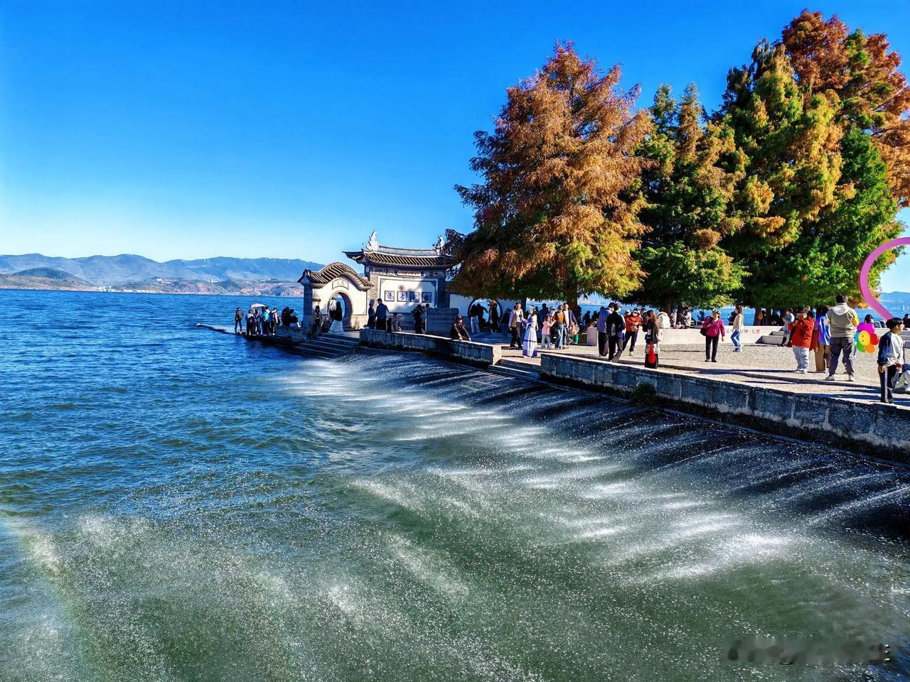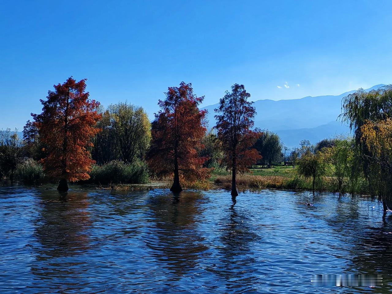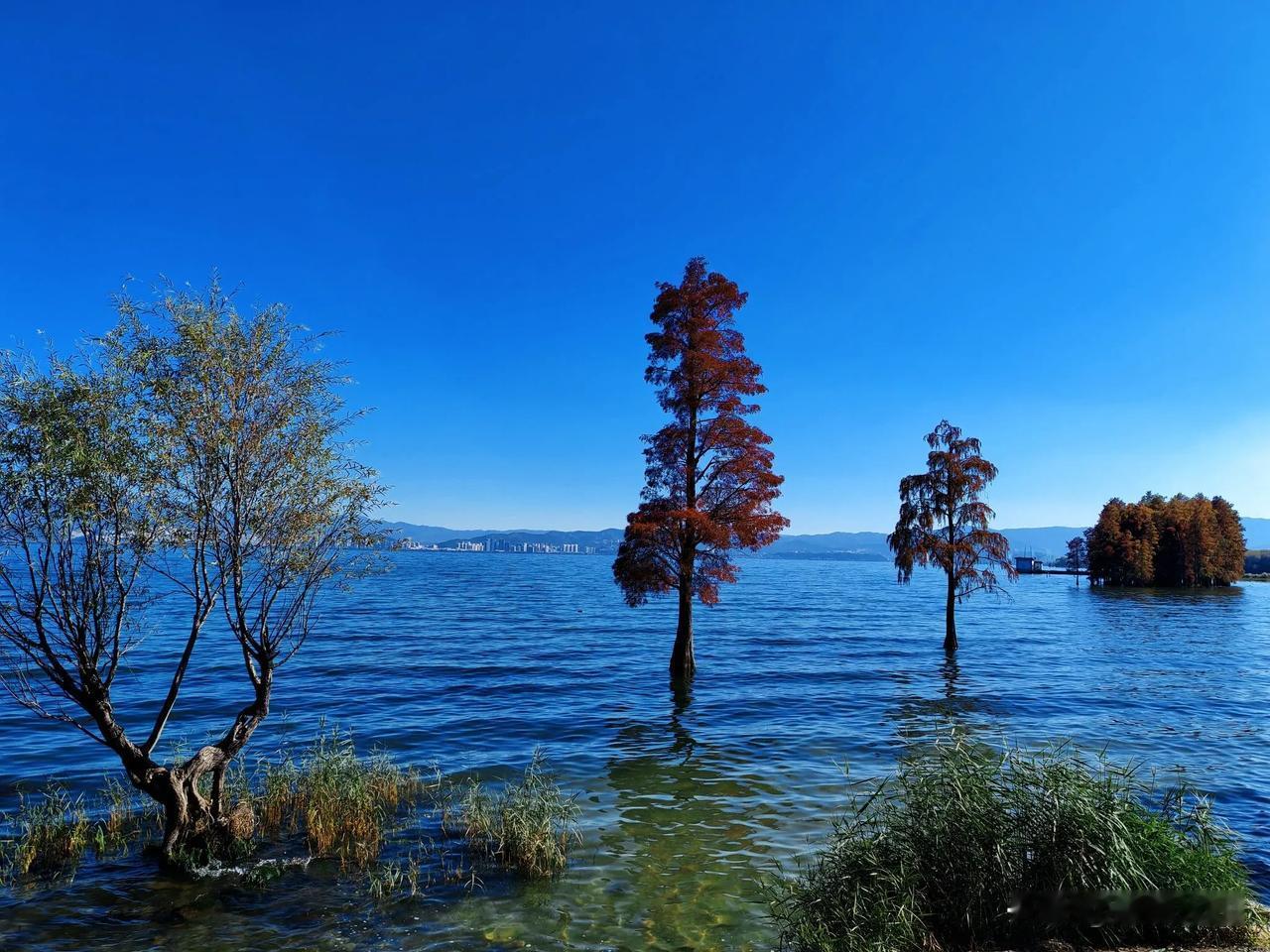 极目远眺,湖面如镜,倒映着苍穹的云影,水天一体泛起淡淡的雾霭,仿佛世界的边界在此