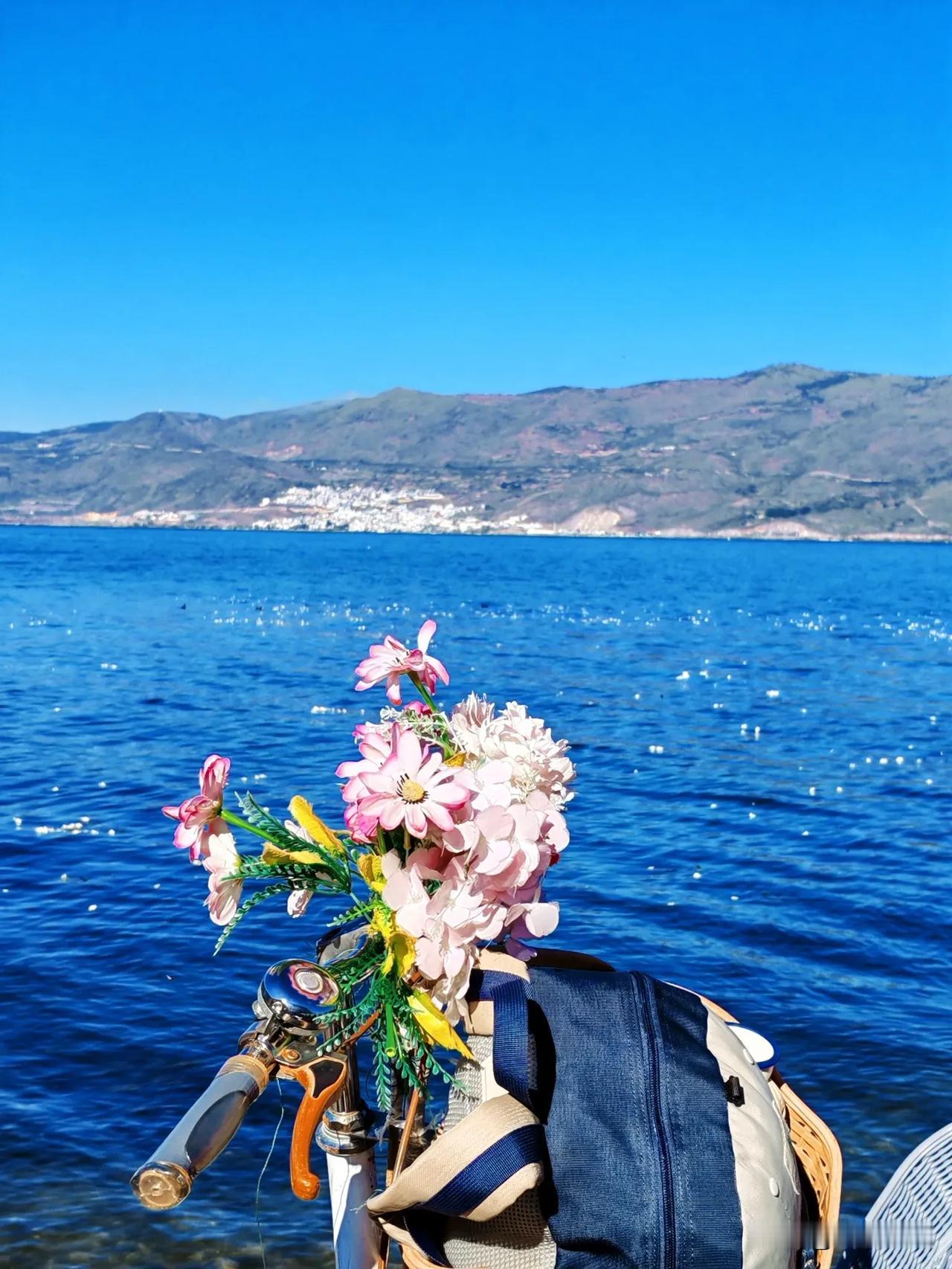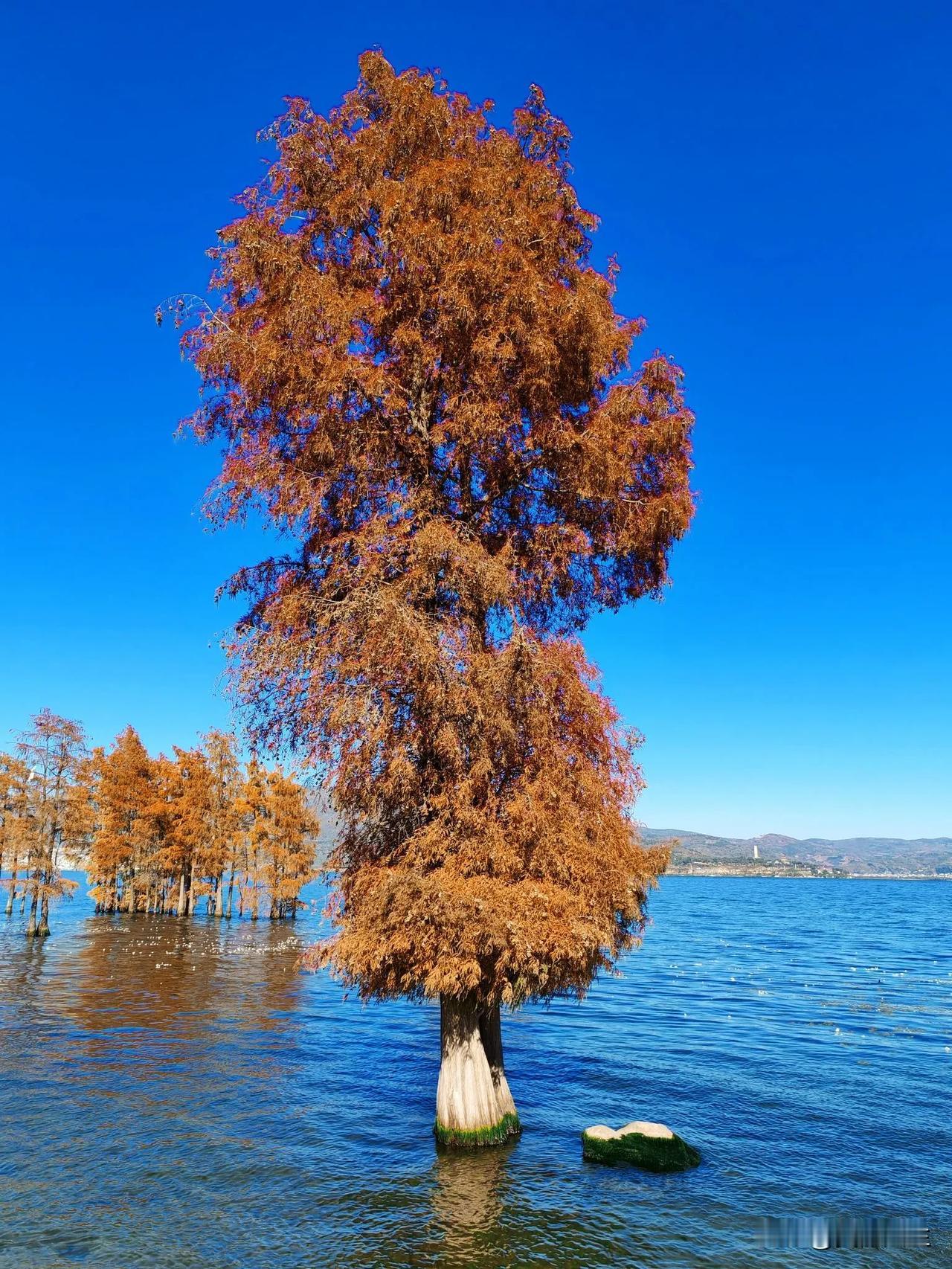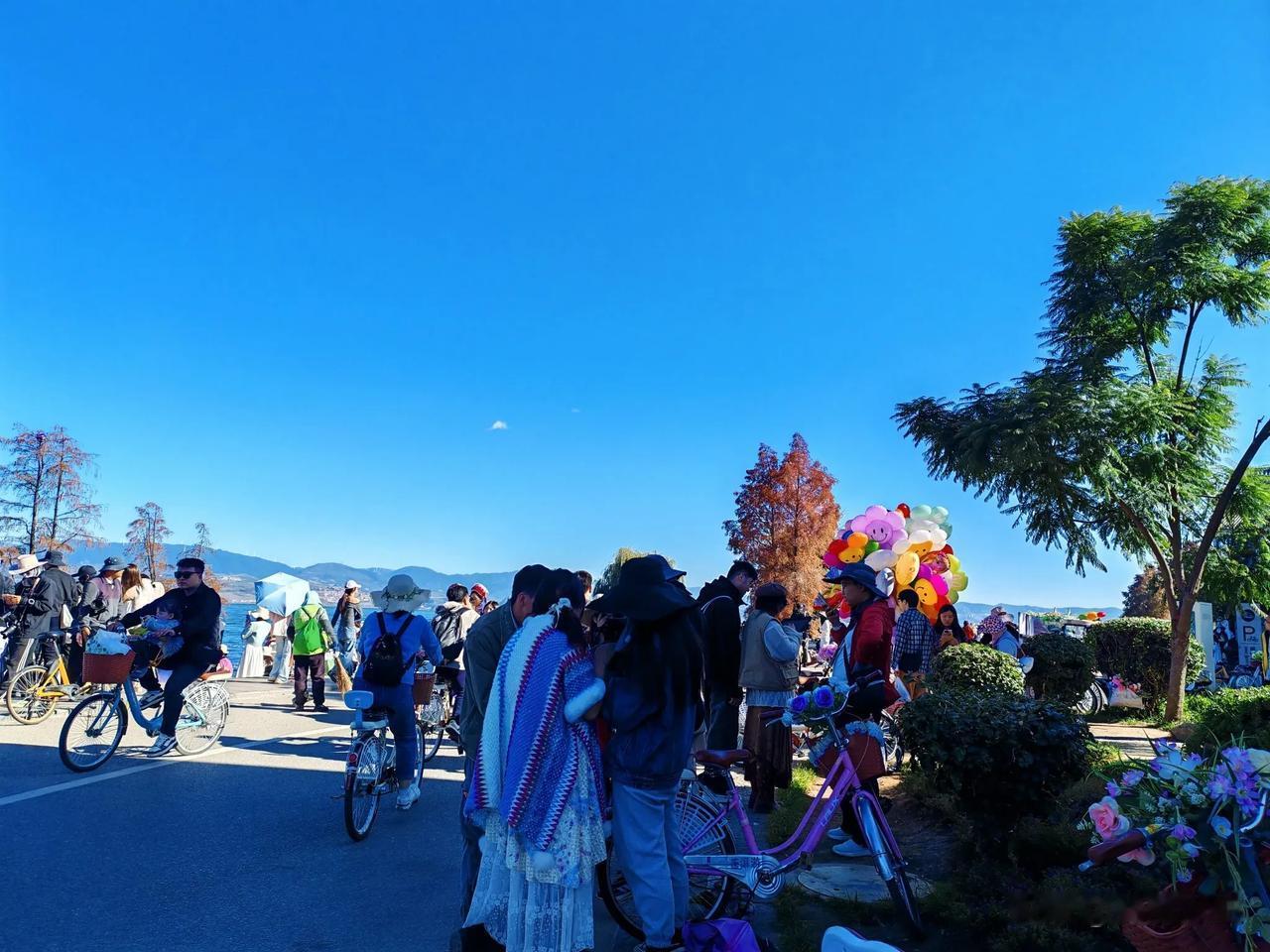 极目远眺,湖面如镜,倒映着苍穹的云影,水天一体泛起淡淡的雾霭,仿佛世界的边界在此