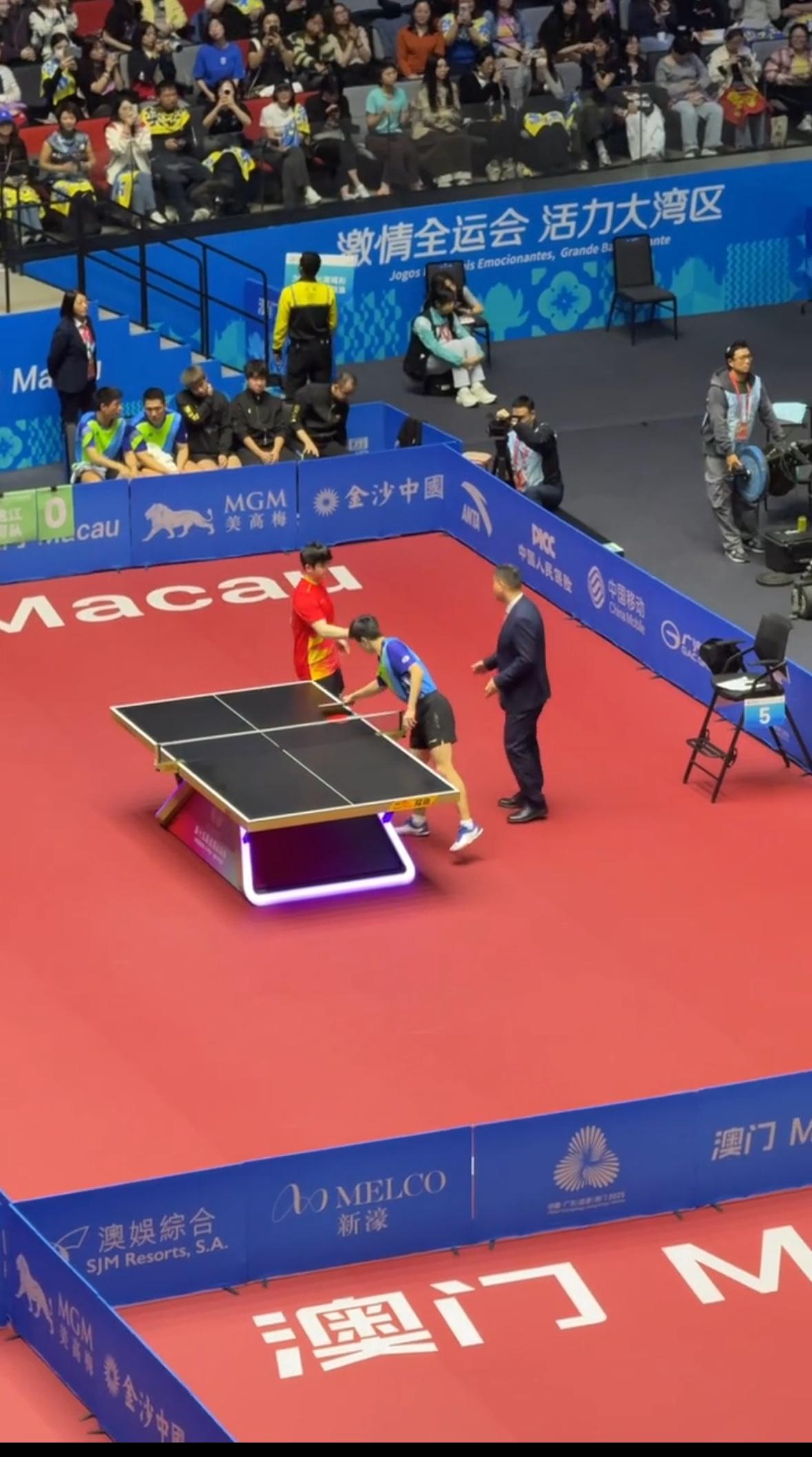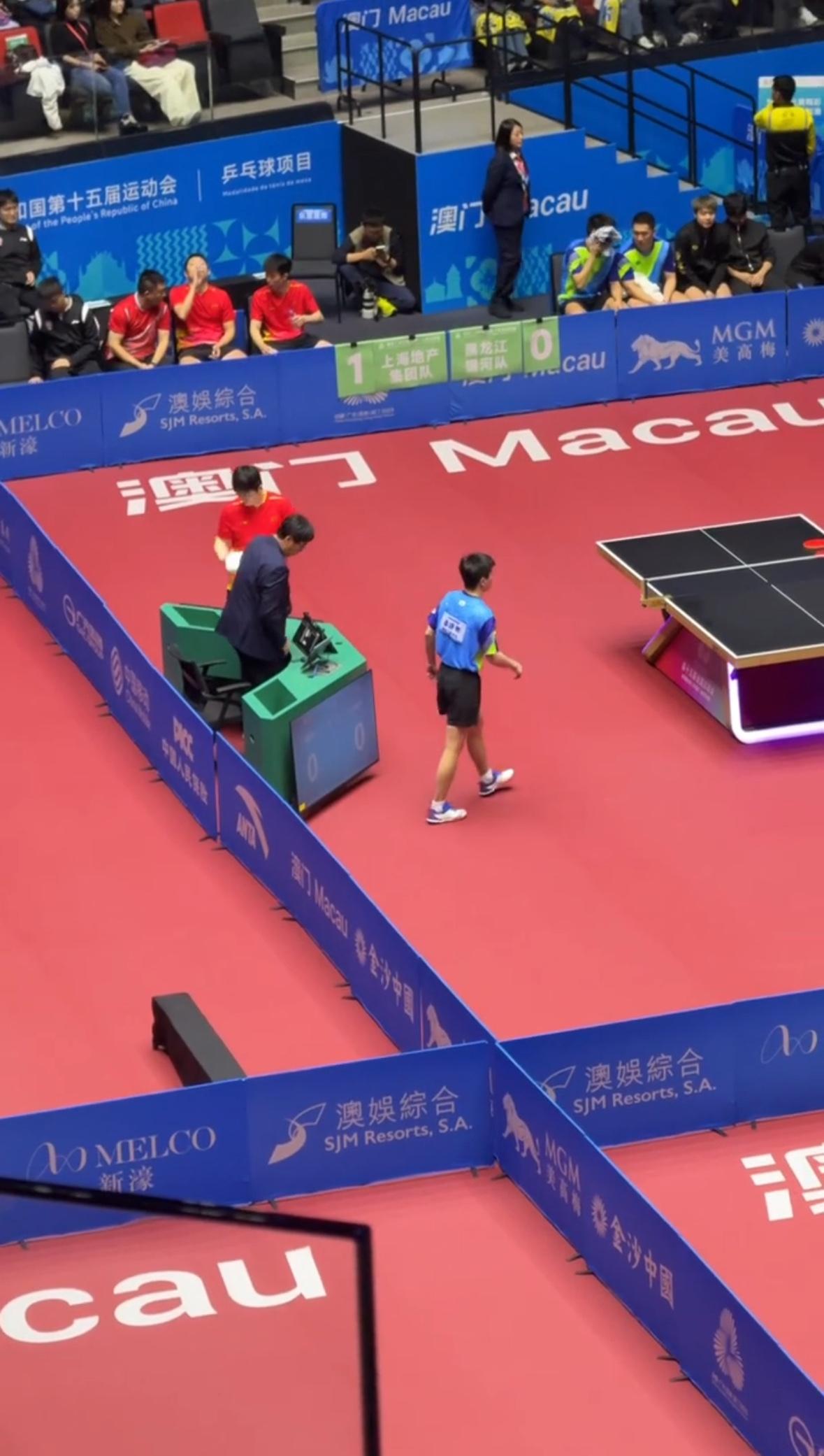 东哥这个架势上场了,先和对手握手,再给裁判握手,很有礼貌了,仪式感拉满! 东哥上场,真的激动坏,全神贯注看这一场比拼,拿回属于上海队的就够了,开心打球,打出自己的兴致,真的优秀到家了,超级棒的小人呢,激动的心,真的到达了极点,这个身材强壮,很开心的上场了,拿下!
