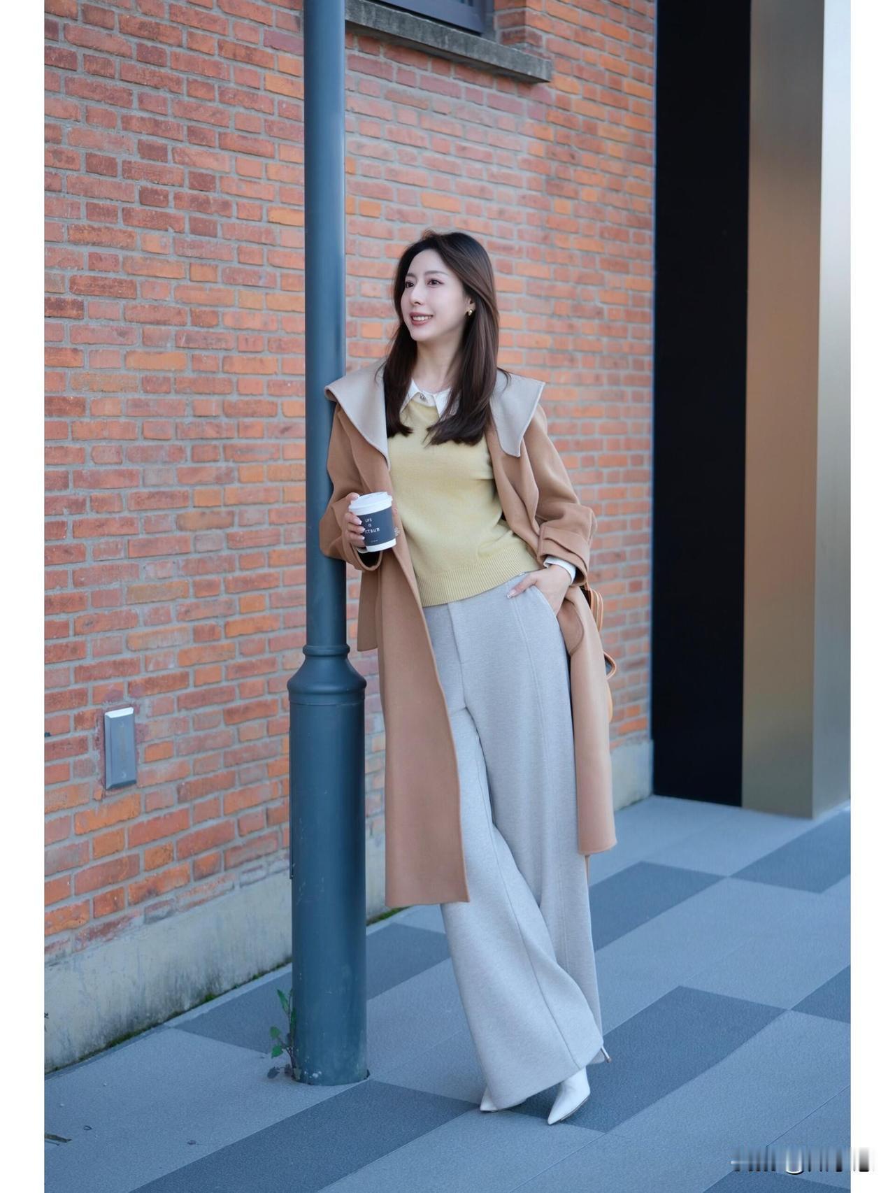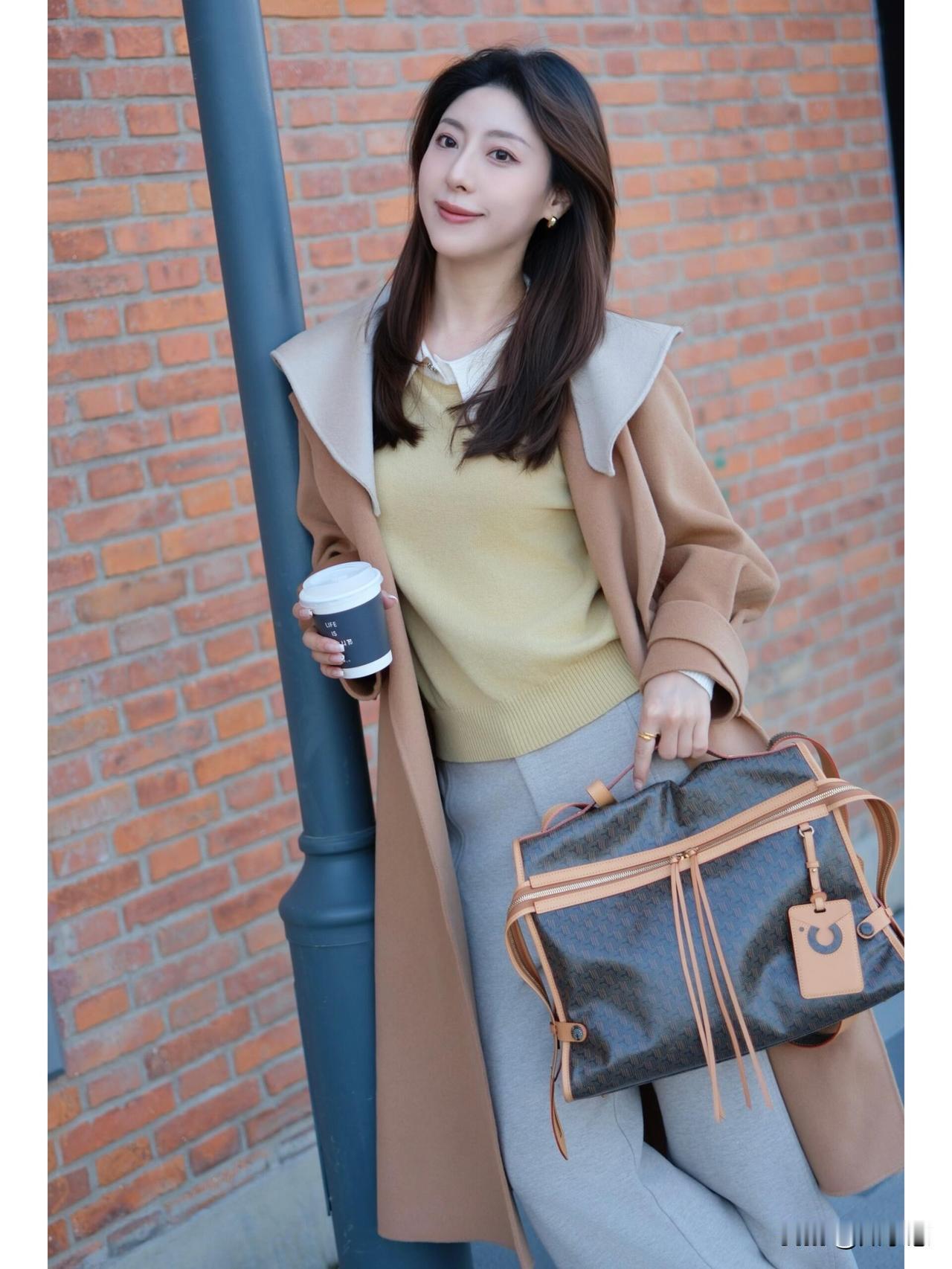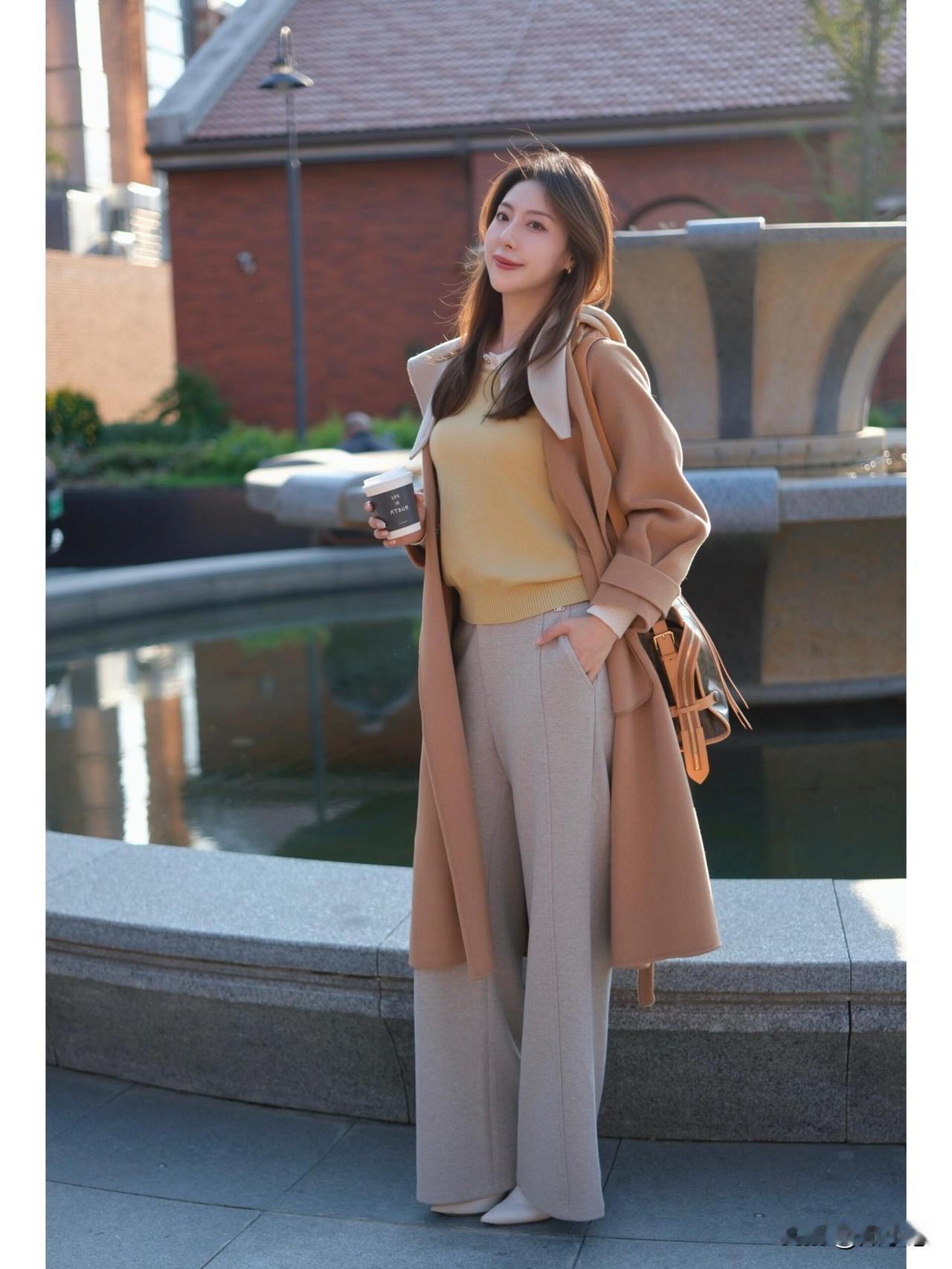 冬日𝒊𝒏𝒔𝒑𝒐 🍂街头的温柔铠甲 降温了才知道大衣有多香! 内搭软糯的淡黄色毛衣 配上清爽的阔腿裤 整个人都透着不费力的高级感✨ 点睛之笔是老花卡其色包包 让整体搭配更有层次 走在冬日街头仿佛自带柔光 气质温柔又斩男~ 保暖和时髦感都拿捏住了🧥