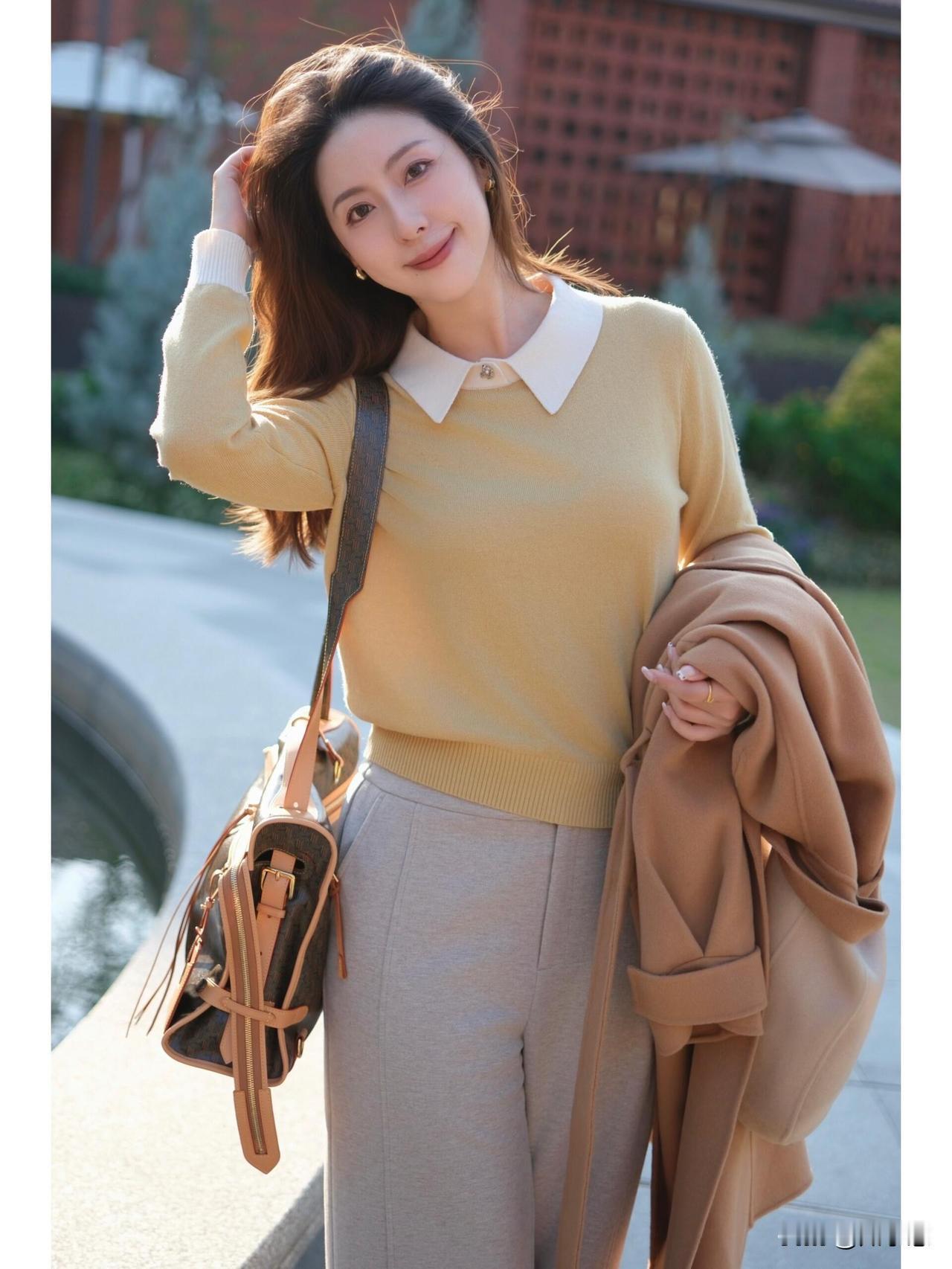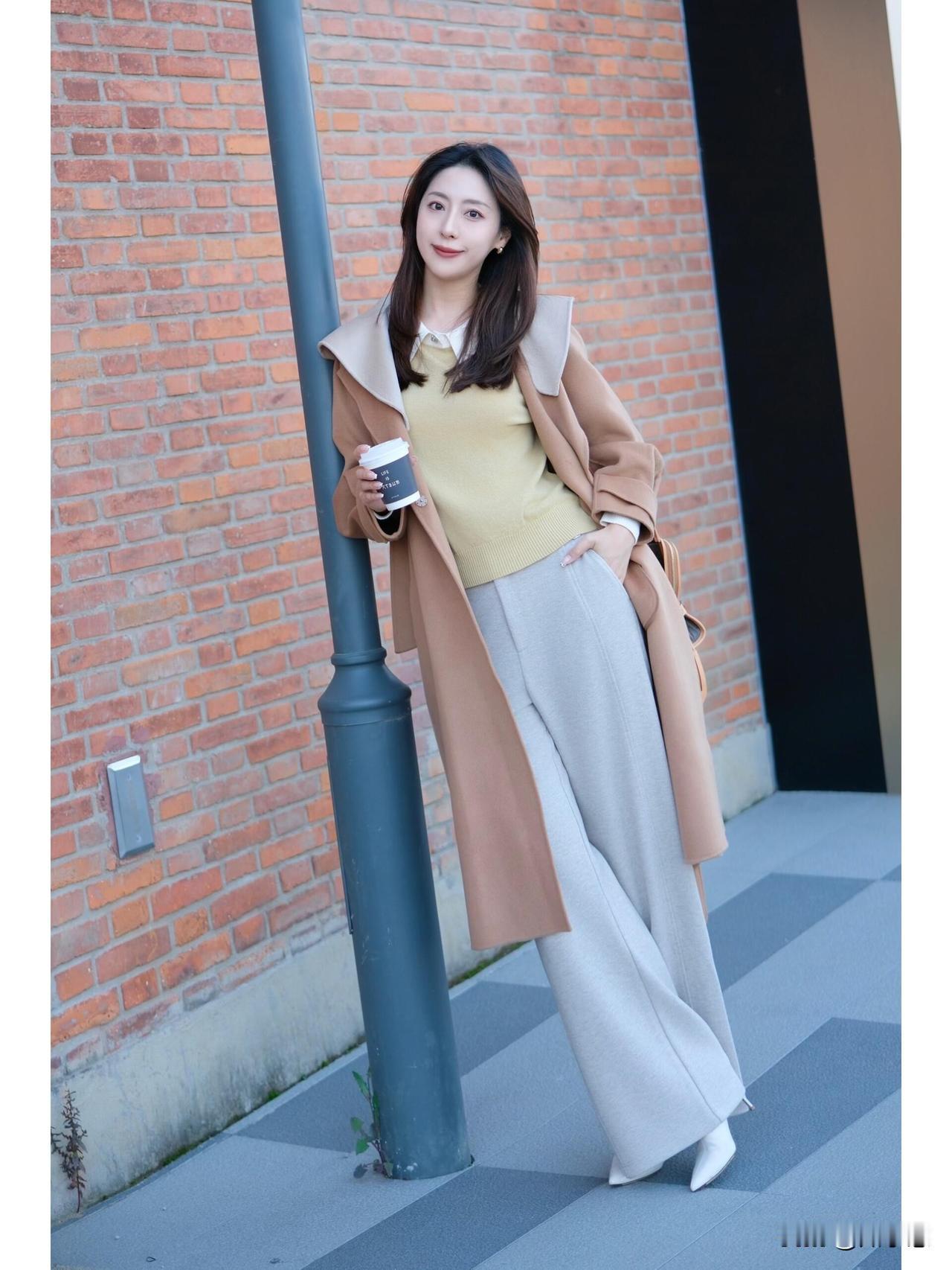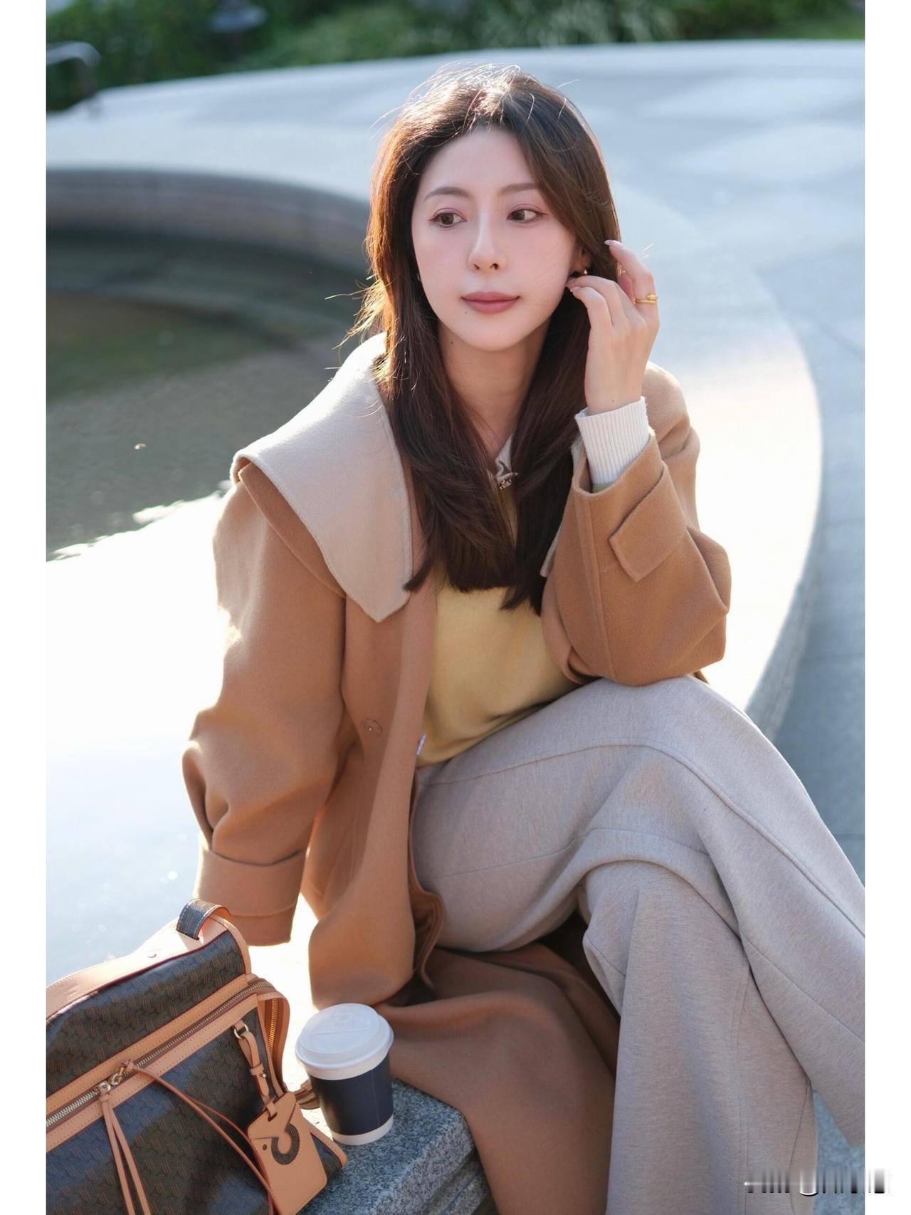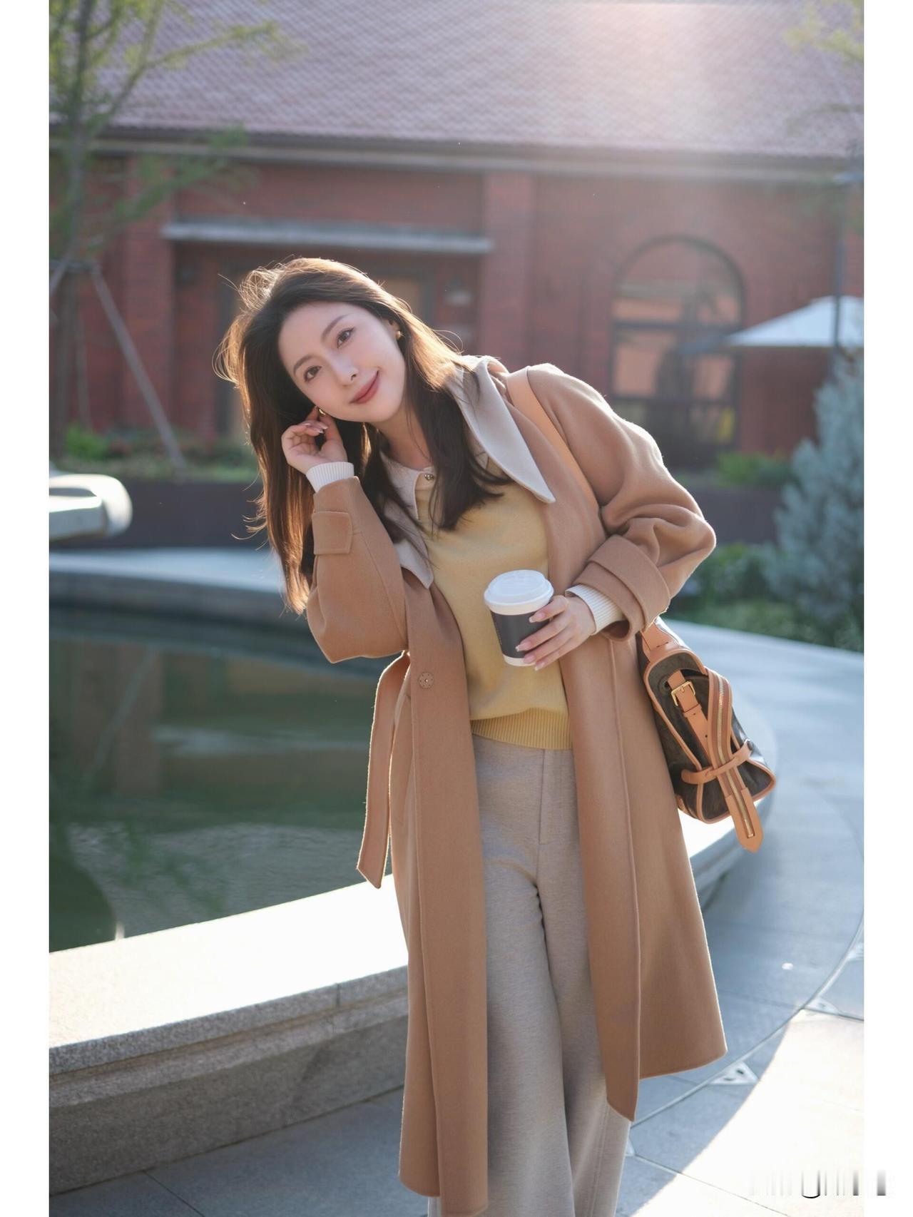 冬日𝒊𝒏𝒔𝒑𝒐 🍂街头的温柔铠甲 降温了才知道大衣有多香! 内搭软糯的淡黄色毛衣 配上清爽的阔腿裤 整个人都透着不费力的高级感✨ 点睛之笔是老花卡其色包包 让整体搭配更有层次 走在冬日街头仿佛自带柔光 气质温柔又斩男~ 保暖和时髦感都拿捏住了🧥