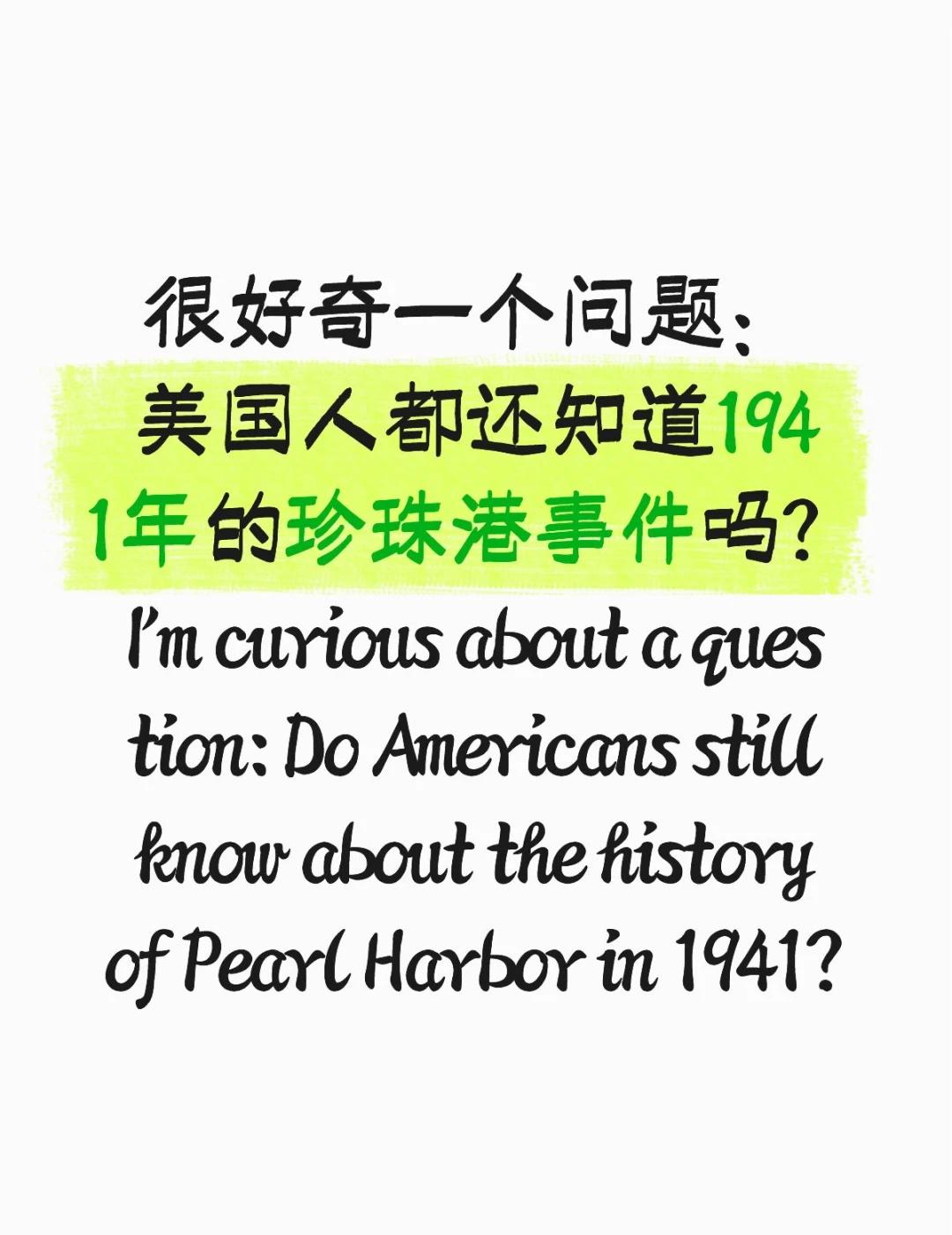 很好奇一个问题:美国人都还知道1941年的珍珠港事件吗? I'm curious about a question: Do Americans still know about the history of Pearl Harbor in 1941? usa american