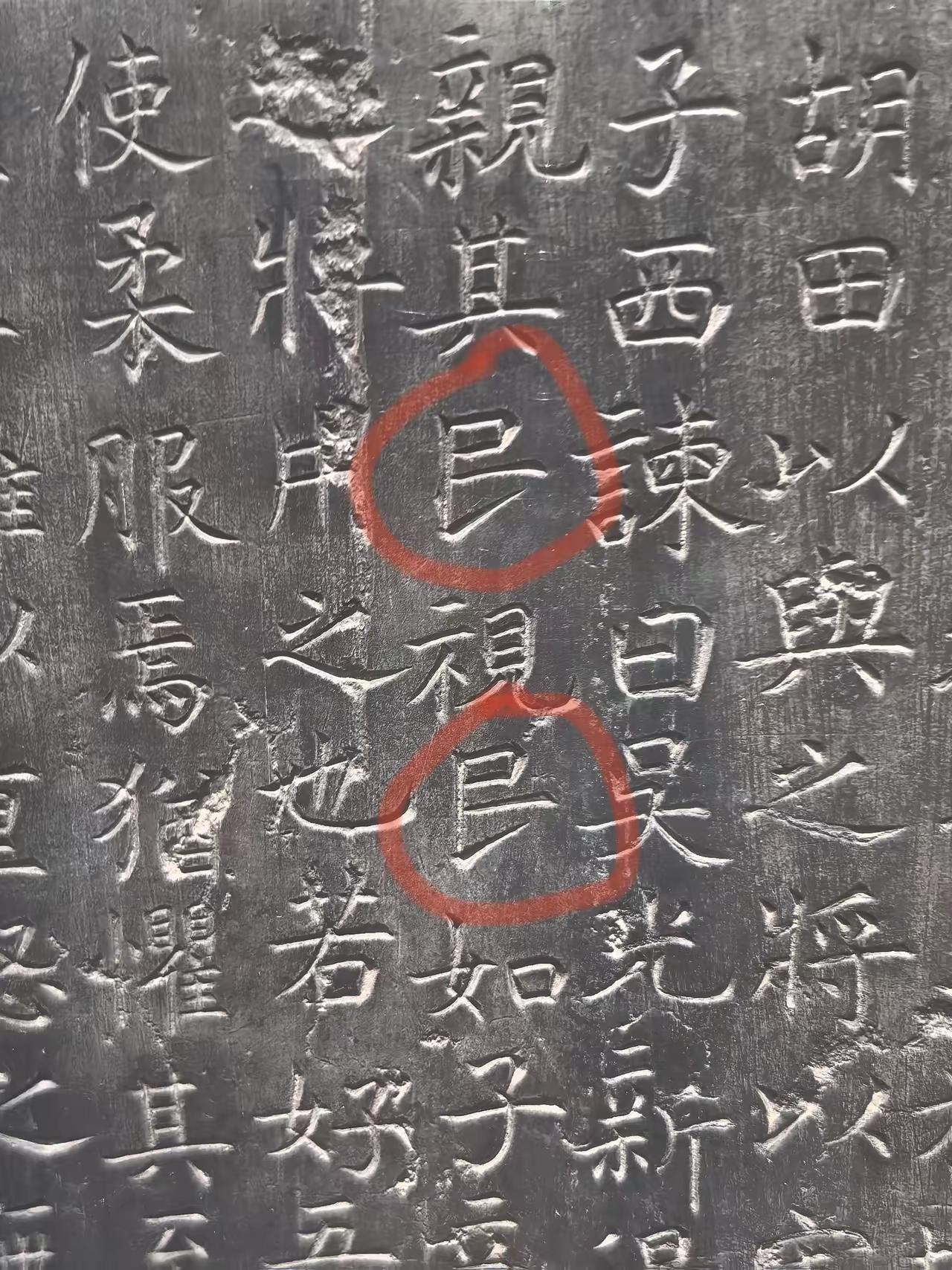 近日在西安碑林游走参观,发现一块碑上,有一个字,总感觉不伦不类,你说是“民“吧,他少一竖弯钩,你说是“吊“吧,也不像,你说是“艮“吧,似应少两笔,左看右看,结果看的啥字也不是,你说这是书写者价钱没给够而故意少写一笔以便给主人暗示,还刻碑者价钱没给足,故意给你留一笔?我粉丝朋友都是高手,你们说呢?请给予赐教!