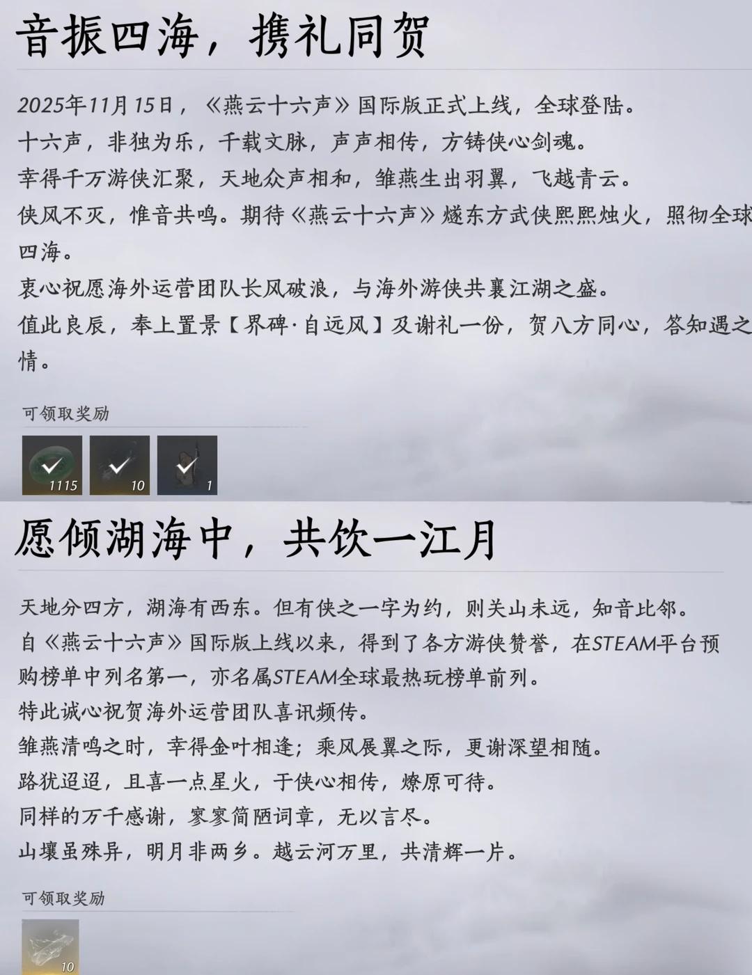 里程碑!祝燕子大卖带着中华文化走向国际! 顺便预告主包准备近期开燕子国际号 同步开放ins & 推特 ,以后内外网同步更新 燕云十六声 燕云说书人计划