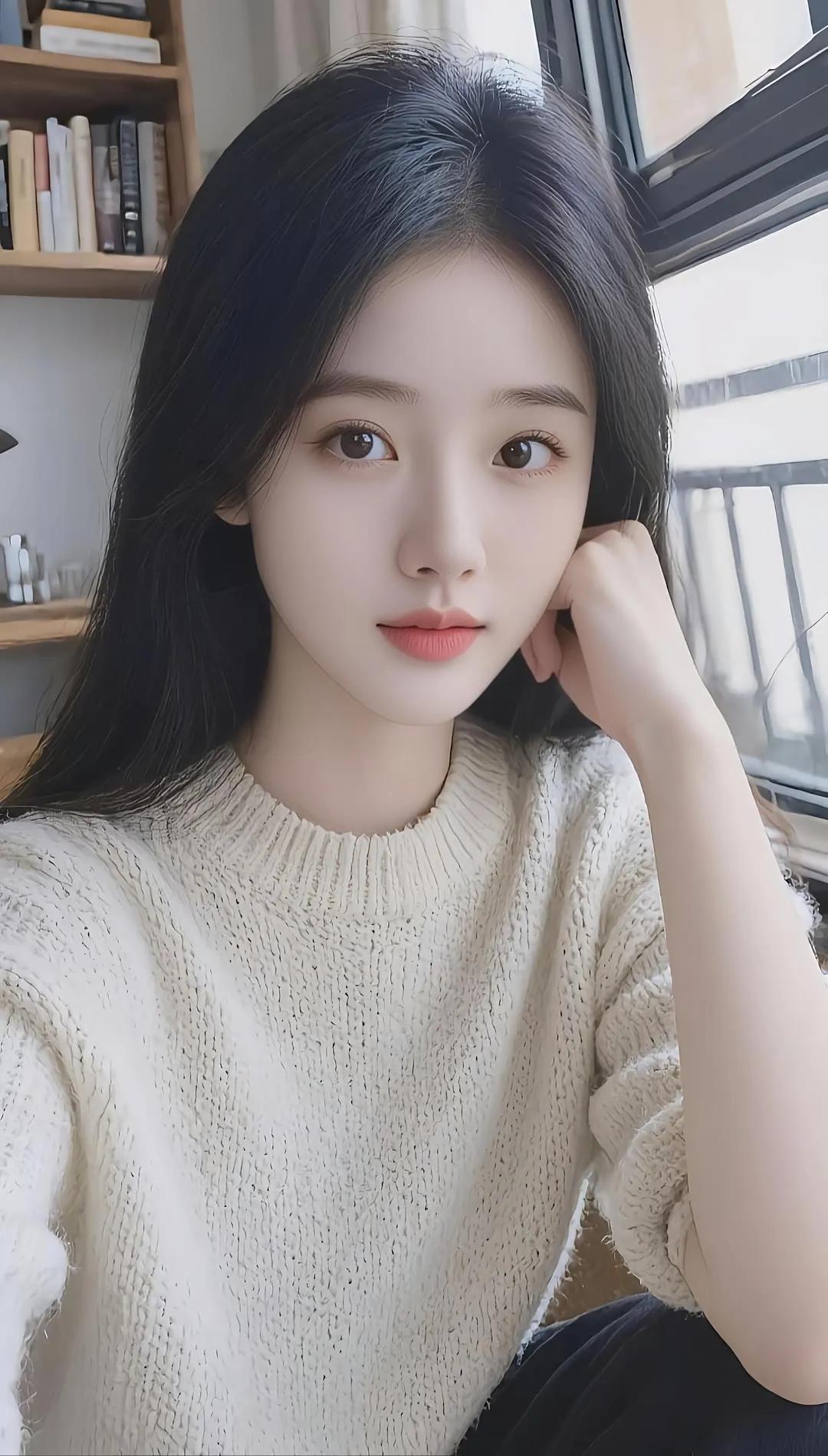 这姑娘穿得真温柔,像在咖啡馆。街拍 高清美女