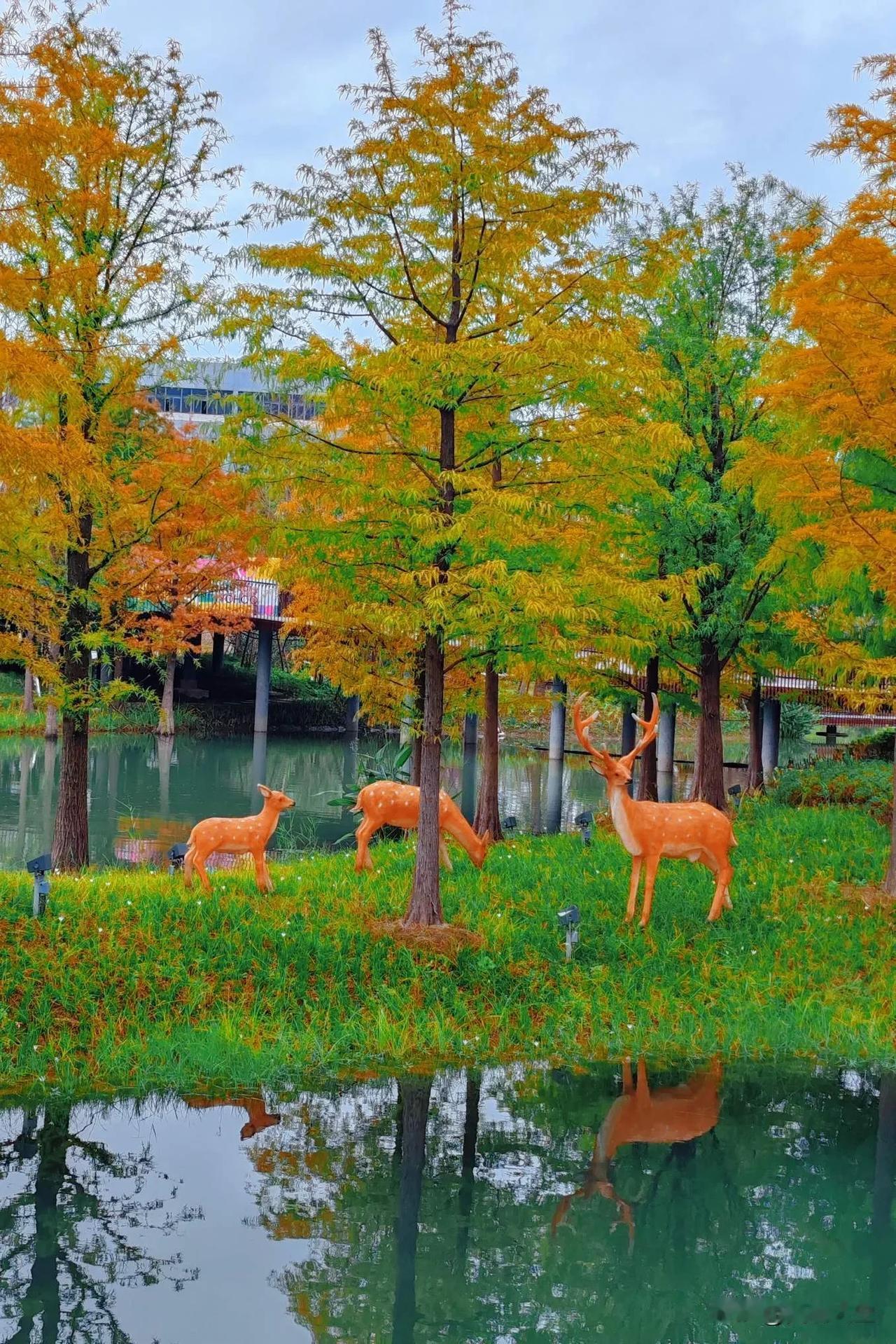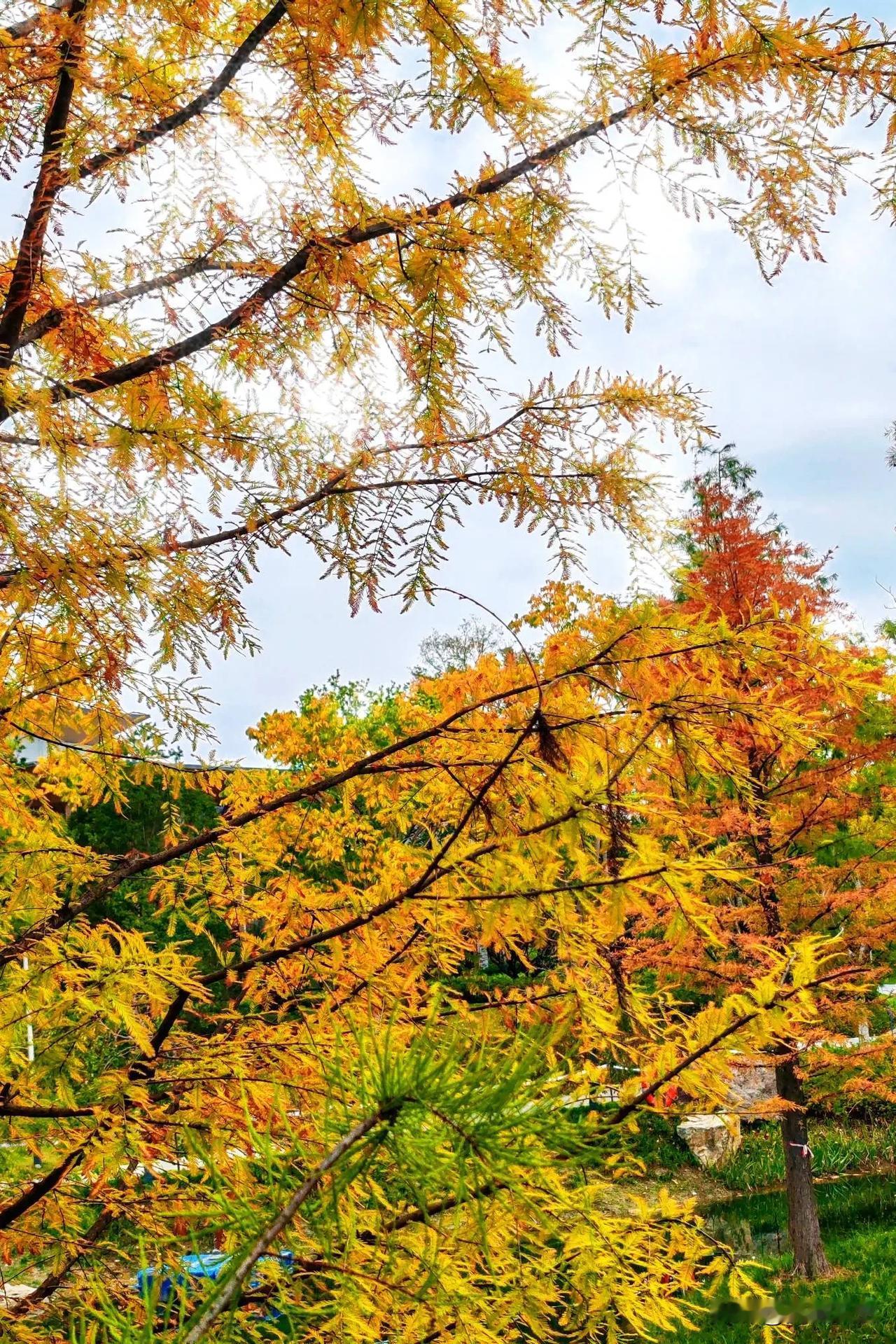 秋光染透水杉林,笔挺枝干擎着朱红羽叶,风过簌簌落满小径。阳光穿过枝叶筛下碎金,踩叶而行,满是清冽秋意与温柔诗意。