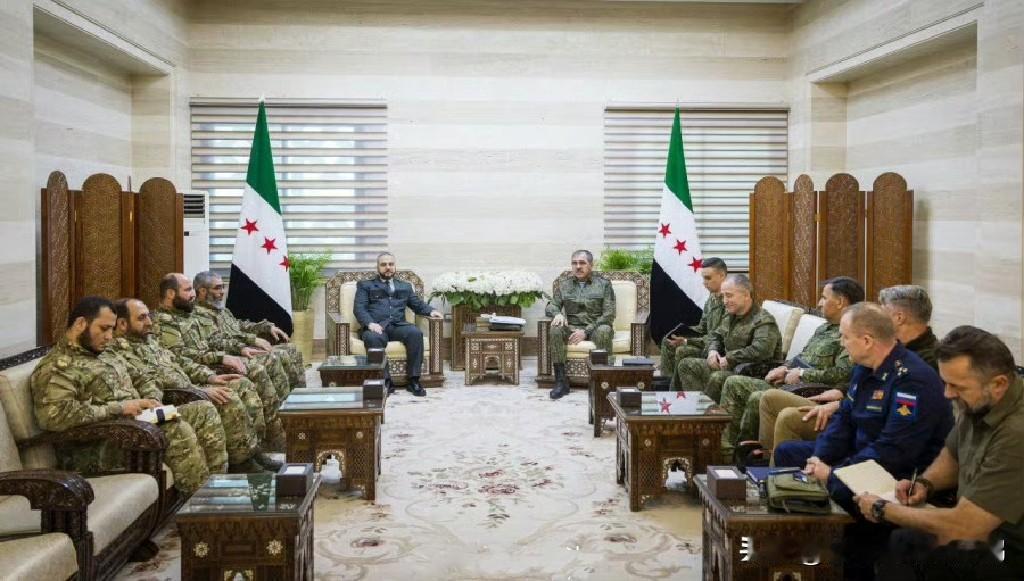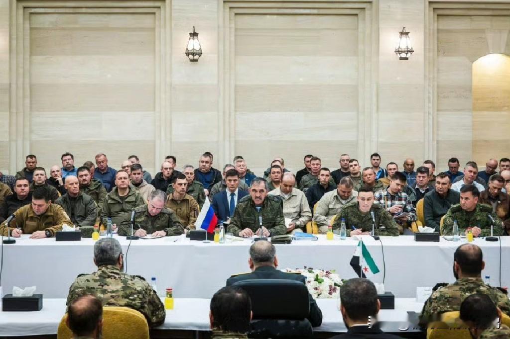 俄罗斯与朱拉尼团伙的谈判 感觉叶夫库罗夫这是把前瓦格纳们带去压场子了吧。 反正他后面坐着的这一堆除了驻叙部队指挥官外,没人像正经外交人员。 这次谈判,朱拉尼团伙向俄罗斯人许诺了更多的条件,除保留俄罗斯原有军事基地外,还请求俄罗斯在叙以边境建立多个军事基地(德拉和库奈特拉地区)。 目的嘛很清楚,阻止以色列的侵略。 另外,朱拉尼团伙还请求俄罗斯允许它们采购俄制武器系统。也愿意考虑解决原“高加索酋长国”在叙利亚的前途问题。 #俄乌冲突##巴以冲突#
