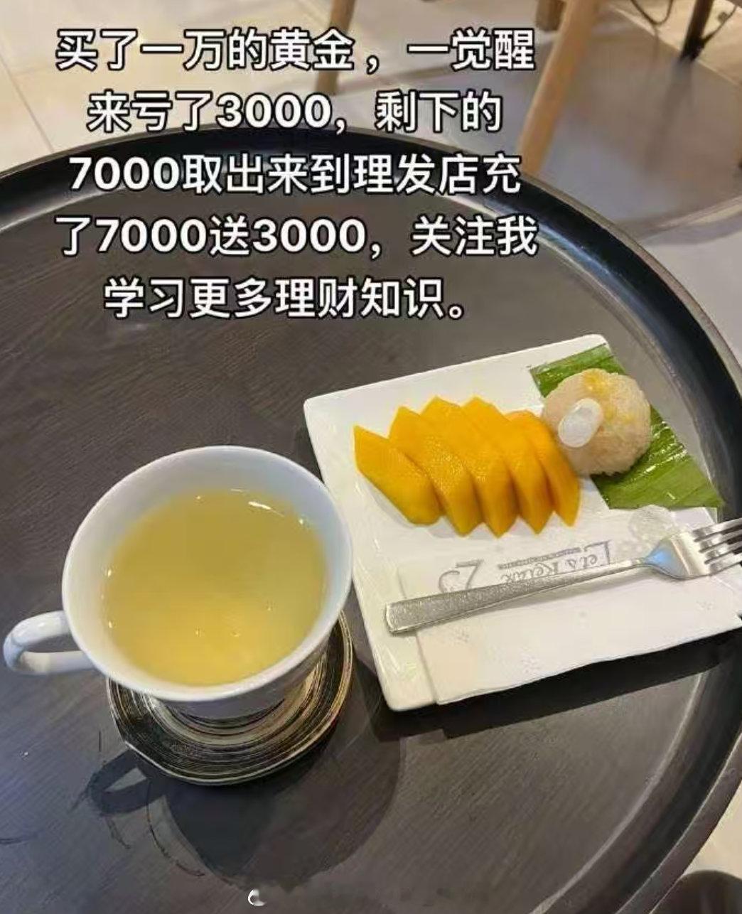 买了1w的黄金亏了3000剩下的7000拿去理发店充了7000送了3000关注我学会更多理财小知识