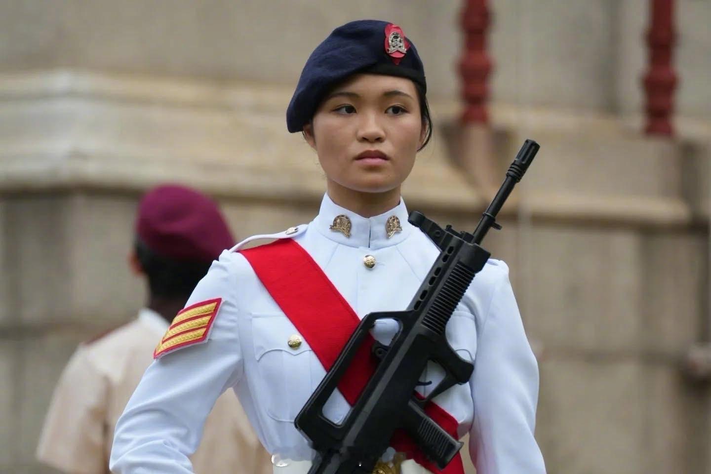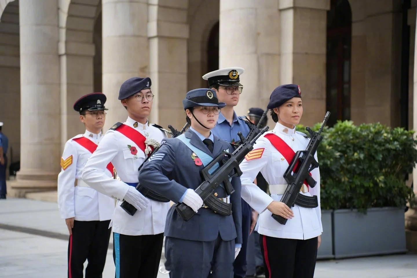 香港探险团、海军学员团和空中训练团加入退伍军人和政要在香港参加2025年纪念日, 旧的SA80步枪终于被换成95式步枪了。