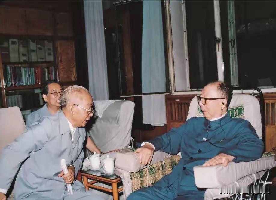 这张珍贵合影拍摄于1991年10月 在1991年10月的一天,在聂帅北京会所中来了一位故人,这位故人来看望重病在家的聂荣臻元帅,在革命时期他们并未交集,但在解放后七十年代他们才开始相识,并因为工作方面的事才正式相识,所以他能来看望聂帅,聂帅很惊讶,此时聂帅身体非常不好,已经92岁高龄了,坐在那里和他聊天的时候留下这张珍贵合影!就在第二年5月14日,也就是1992年5月4日,聂帅与世长辞,享年93岁!走完了这充满传奇色彩的一生,这也是他们最后一次见面!你知道看望聂帅的老人是谁么?