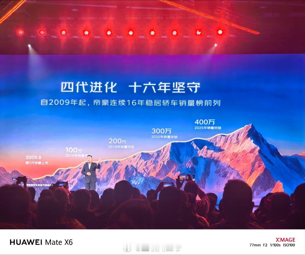 来参加第五代帝豪全球上市发布会,帝豪经历4代进化,十六年的坚守,已经突破400万辆成就,连续16年稳居轿车销量榜前列 五代帝豪总工程师同台