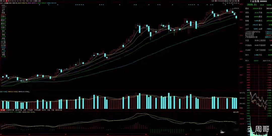 专注A股市场每日实战操作,让散户投资不迷路!如果你不是长线投资者,想在A股市场中活下来,那么必须明白,周密的布局计划只能有个好的开始,严格的操盘纪律才能结出丰硕的果实!大势研判:周二A股市场平量回调,成交量小幅释放150亿至1.95万亿。从技术形态上看,大盘在周二向下击穿了30日线。由于30日线是中期关键趋势支撑线,如果30日线无法守住,大盘就有从碎步上行趋势,转为宽箱体震荡趋势的风险。宽箱体结构上,下方有两道支撑位,一是60日线,二是前期平台支撑位3850附近。创业板指方面,周二已经跌至60日线附近,短期偏弱,中期还宽箱体结构内部,一下子不会做出方向选择。盘面跟踪:周二沪深两市个股跌多涨少,上涨1200家,下跌4100家,亏钱效应较为明显。从板块涨跌幅上看,AI中下游软件端涨幅靠前,中游软件端中,Sora概念、AI语料、智谱AI、多模态AI、AI智能体等逆势走强;下游应用端中,小红书概念、快手概念、文化传媒、游戏等板块逆势走强。不过盘后的交易数据显示,AI软件端主要是游资拉升,机构进场力度依旧不足。跌幅上,顺周期主题大面积杀跌,锂电池产业链、煤炭股领跌两市。近期主线热点方面,除了存储芯片跌幅小于大盘外,其他跌幅全部超过大盘。由此可见,周二市场格局极不健康。消息面跟踪:1、12部门印发《金融支持北京市提振和扩大消费的实施方案》,力争到2030年北京市消费领域金融服务水平进一步提升,金融助力北京国际消费中心城市建设取得积极进展,多元化消费金融服务体系基本建成。2、11月18日,工信部印发了《高标准数字园区建设指南》。到2027年,建成200个左右高标准数字园区,实现园区规上工业企业数字化改造全覆盖,园区管理、服务数字化水平明显提升,形成一批可复制可推广的数智赋能园区发展的典型模式,园区发展质量和效益显著提升。市场资金面:周二的交易数据并不乐观。机构买盘不变卖盘小幅释放,净流出量继续增加,转为大幅净流出。游资同样买盘不变卖盘释放,从小幅净流入转为持平状态。板块资金流向上,机构和游资没有合力加仓的主线热点,合力减仓了非主线热点中的海峡概念。分开来看,机构周一在锂电池上出现分歧,周二开始大幅减仓锂电池。周二逆势上涨的AI软件端中,游资大幅加仓了AIGC,中幅加仓AI智能体和云计算。但机构并未向AI软件端调仓,3个主要分支中,仅小幅加仓了云计算,逢高减仓了AIGC和AI智能体。由于机构连续减仓,且没有重点狙击方向,所以短期内仍然不会有新主线顶上来。