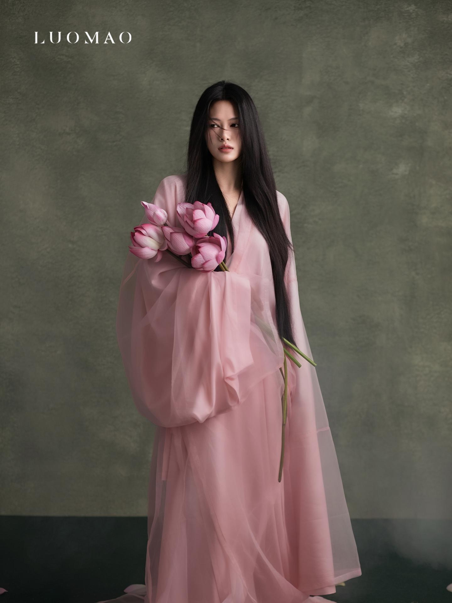 厦门写真|禅意新中式荷花少女,清冷感写真。一袭粉纱💖 青丝垂落 在古意氛围里 我与国风撞个满怀✨ . 手持花束💐 轻抬眉眼 每一张都藏着诗意与温柔 是谁的国风DNA又动啦~ . 禅意写真荷花写真国风写真清冷氛围感写真女子写真