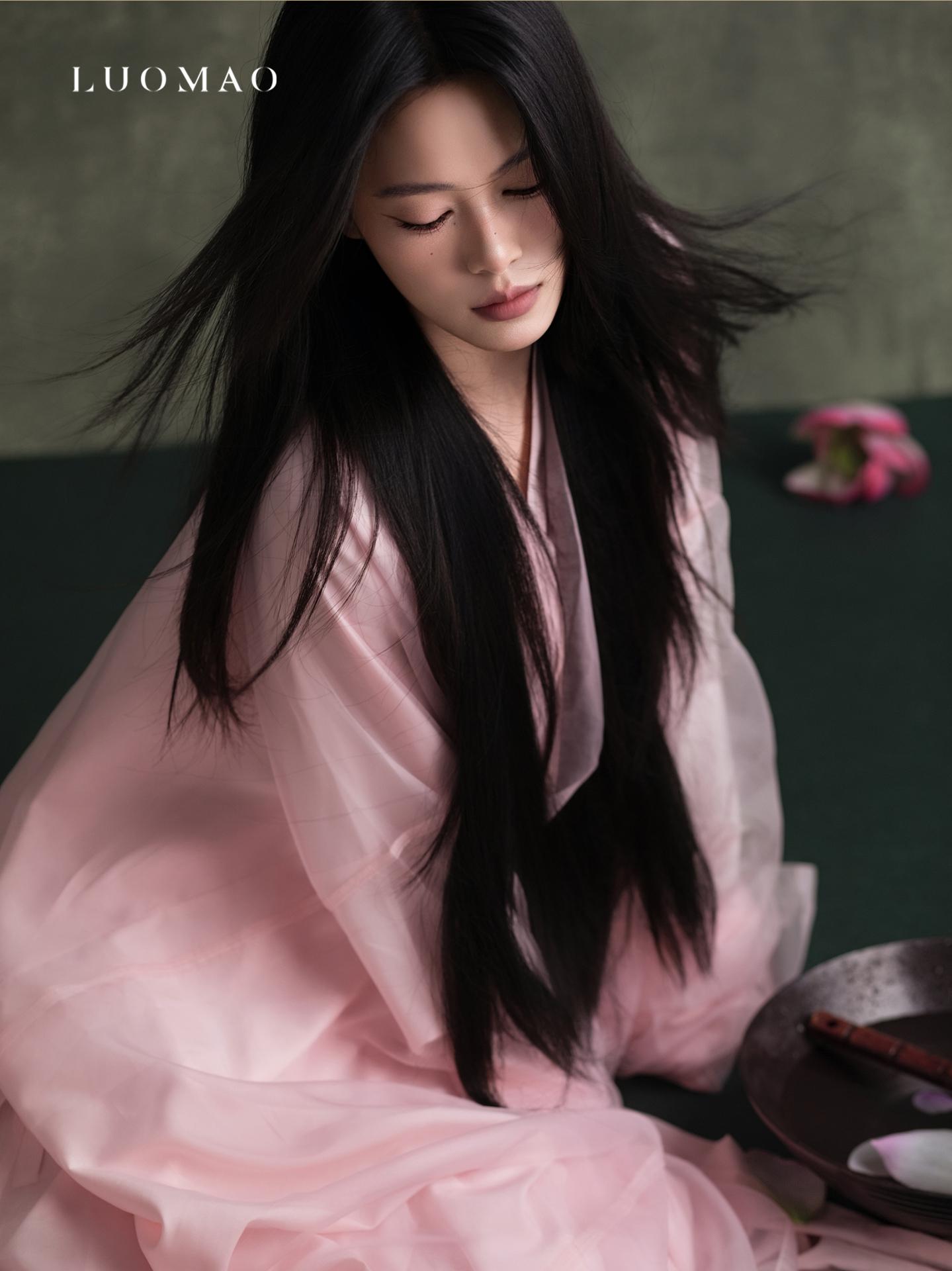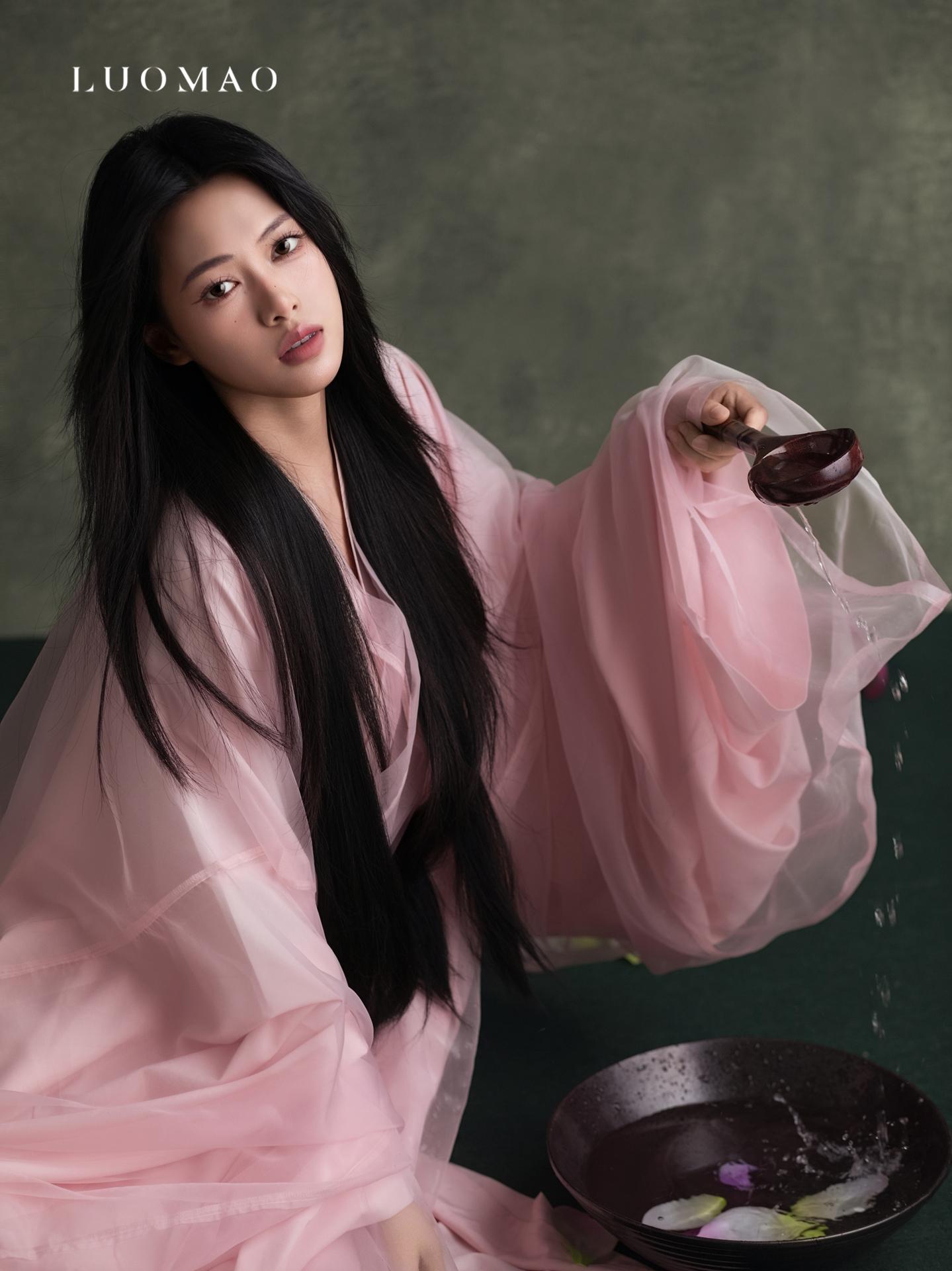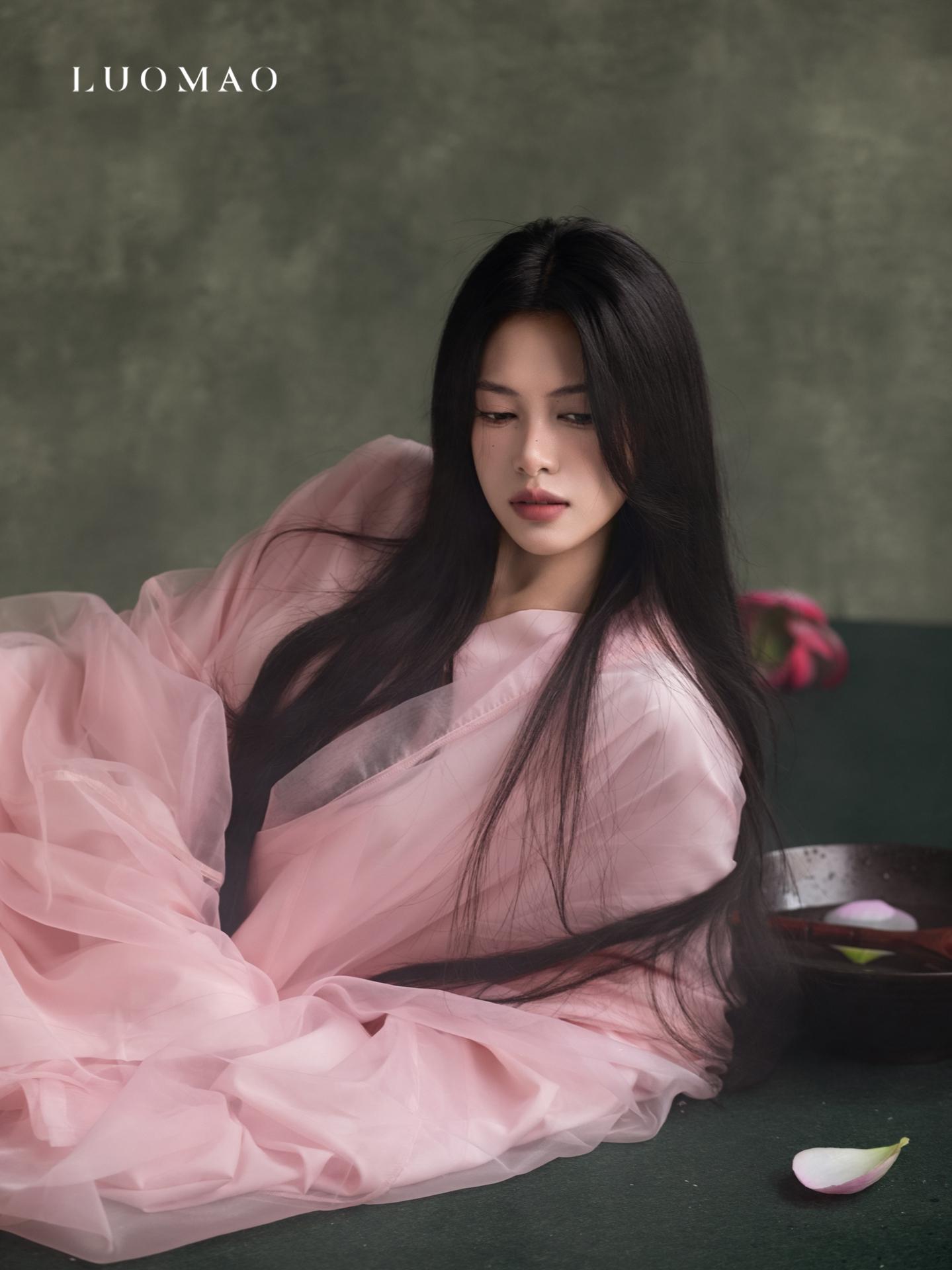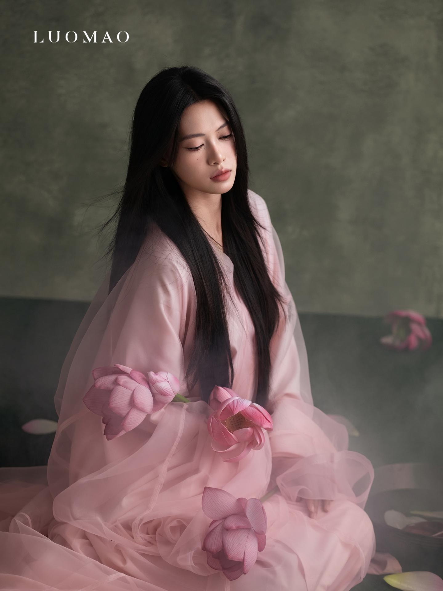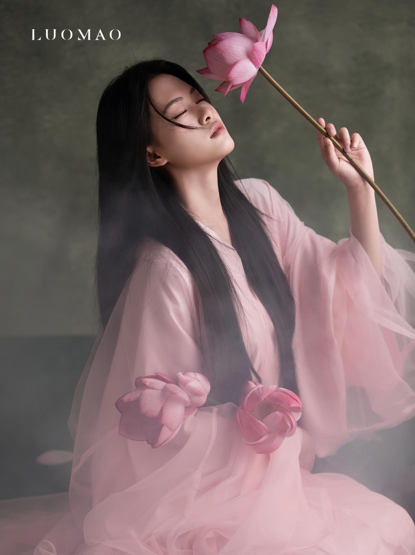 厦门写真|禅意新中式荷花少女,清冷感写真。一袭粉纱💖青丝垂落在...