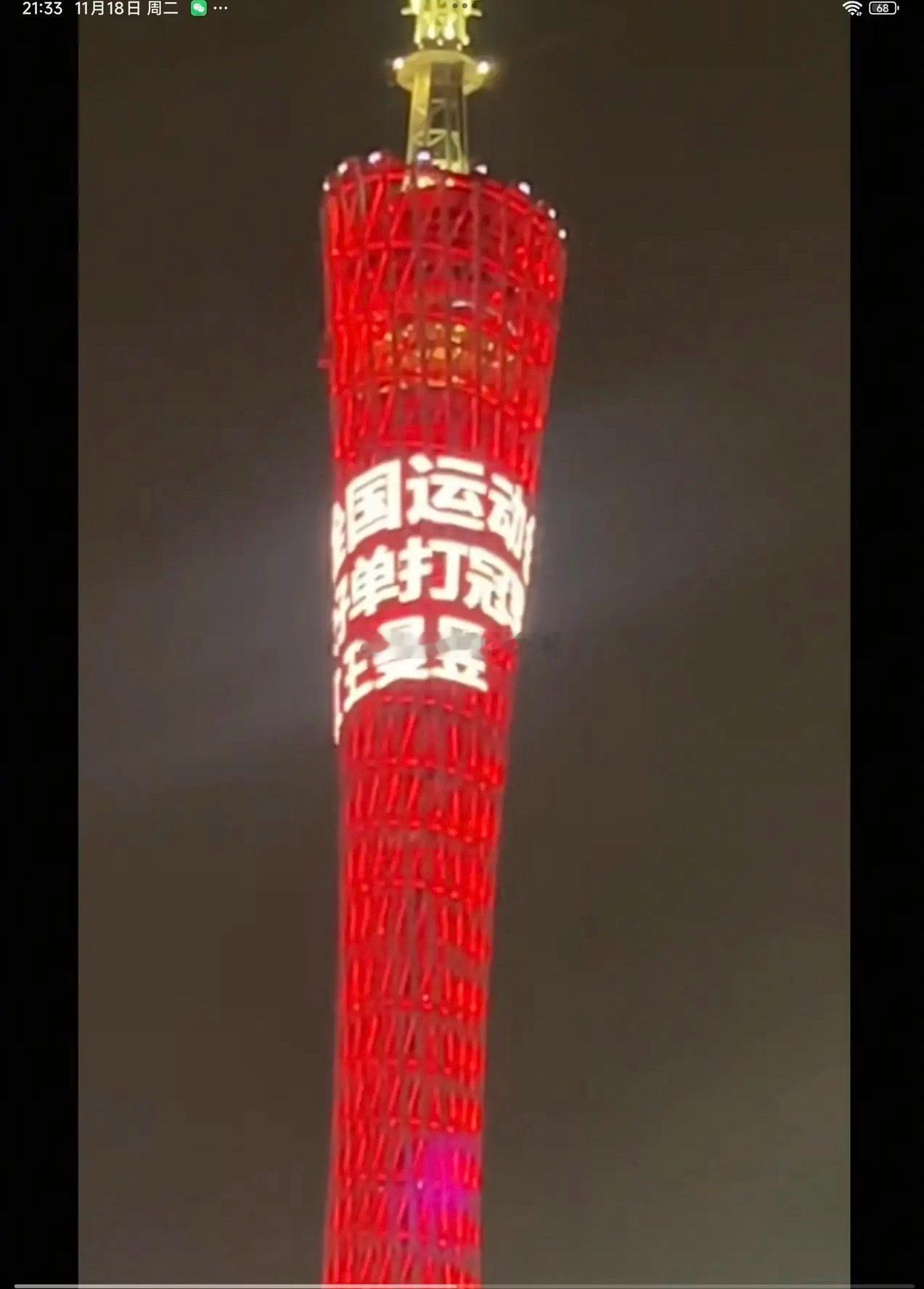 11月17日,王曼昱,林高远,樊振东和刘诗雯,四位登上广州塔小蛮腰,为他们夺得全运会冠军亮灯,这是对冠军应有的排面和尊重,为广东点赞,真是太帅气了王曼昱,林高远,樊振东和刘诗雯,四位都是球品人品俱佳,夺得全运会冠军,有粉丝评论讲,四人都是广东人,感觉讲得也蛮有道理的,林高远和刘诗雯代表广东出战,樊振东出生地在广州,上一届为身披广东战袍,为广东夺下男团立下汗马功劳,王曼昱,被粉丝评为是传说中未来的广东媳妇,但愿这一天早点到来广州塔小蛮腰为四位亮灯,是实力的象征,也是为四位健儿送上最高的荣誉,真是太霸气了