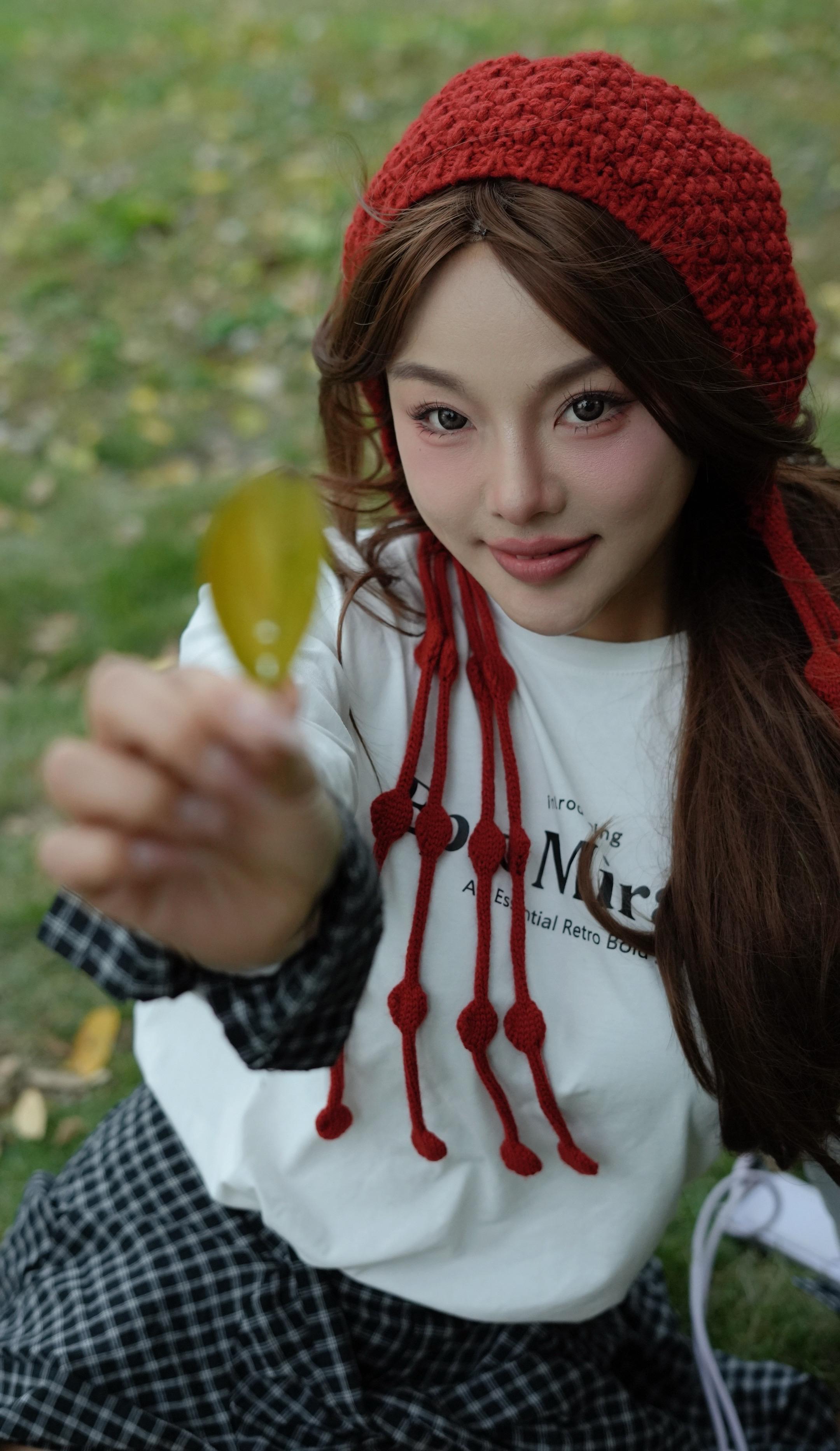 赵今麦粉色毛衣搭配灰色百褶裙,甜美又不失灵动,黑色袜靴为整体增添精致感,是少女