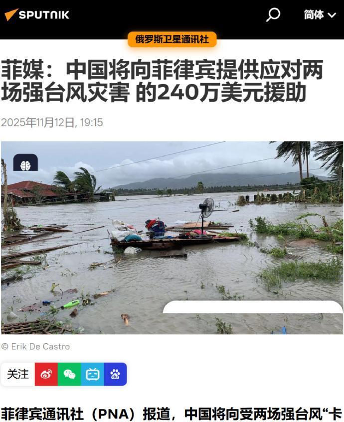 就在刚刚 中国突然宣布了向菲律宾提供240万美元紧急援助,用于食品、饮用水、