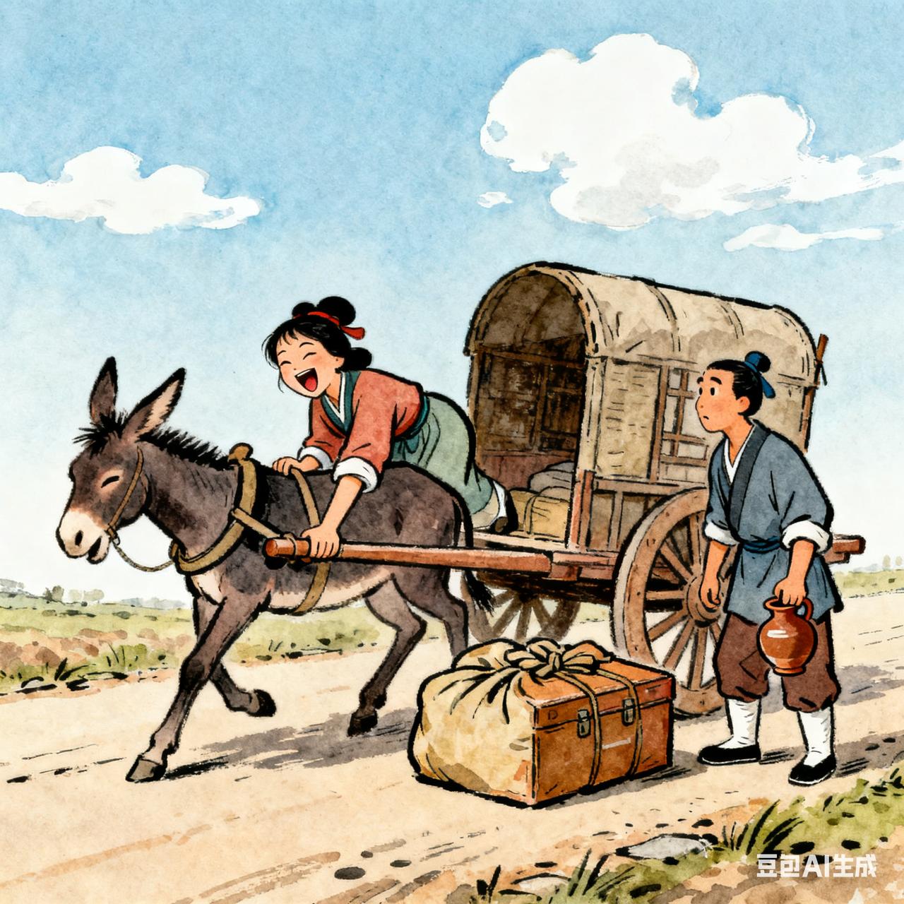 古代夫妻搞笑段子 货郎媳妇要回娘家,头天夜里就把木箱子翻得底朝天。货郎蹲在门槛上瞅着,手里还转着拨浪鼓:“带两匹花布就行呗,你咋把我新收的胭脂也往里头搁?” 媳妇瞪他一眼:“我妹子上次见了这胭脂直眼馋,不带两盒,她咋知道你这姐夫疼她?”说着又往里头塞了包酥糖,“还有这个,小外甥总念叨你给的糖比镇上的甜。” 货郎看着箱子越码越高,忍不住乐:“你这哪是回娘家,是把我货担子都搬空了?” 第二天一早,媳妇锁箱子刚要上驴车,货郎拎着个陶罐追出来:“忘带这个——你说爹爱喝两口,我昨儿新泡的枣酒,路上别磕碰着。” 媳妇拍了拍鼓囊囊的箱子,忽然笑了:“早知道你也添东西,我就该把那筐新摘的脆梨也装上,省得娘再去集上买。” 货郎摸了摸后脑勺:“要不……我把梨筐绑车后头?” 媳妇笑得扶着车把直晃:“憨货!再装,驴都得给压趴下了!”