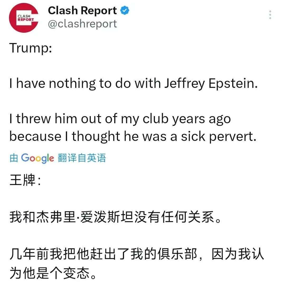 11月19日,特朗普今天与沙特王储会晤时称:“我和爱泼斯坦没有任何关系,几年前我把他赶出了我的俱乐部,因为我认为他是个变态。” [机智]特朗普这波甩锅式撇清,把政坛脱口秀玩出了花!一边喊着和爱泼斯坦毫无关系,一边精准回忆把他赶出俱乐部的细节,这逻辑比爱泼斯坦的关系网还严密,前脚刚呼吁司法部查民主党与爱泼斯坦的关联,后脚就急着给自己贴反变态标签,无非是想借沙特王储的镜头转移焦点,要知道档案里早有他和爱泼斯坦共度数小时的记录,现在装起清白来比谁都自然! 有评论表示,这哪是撇清关系,分明是给此地无银加了豪华配音——毕竟真没关系,谁会记着几年前赶人的琐碎戏码?