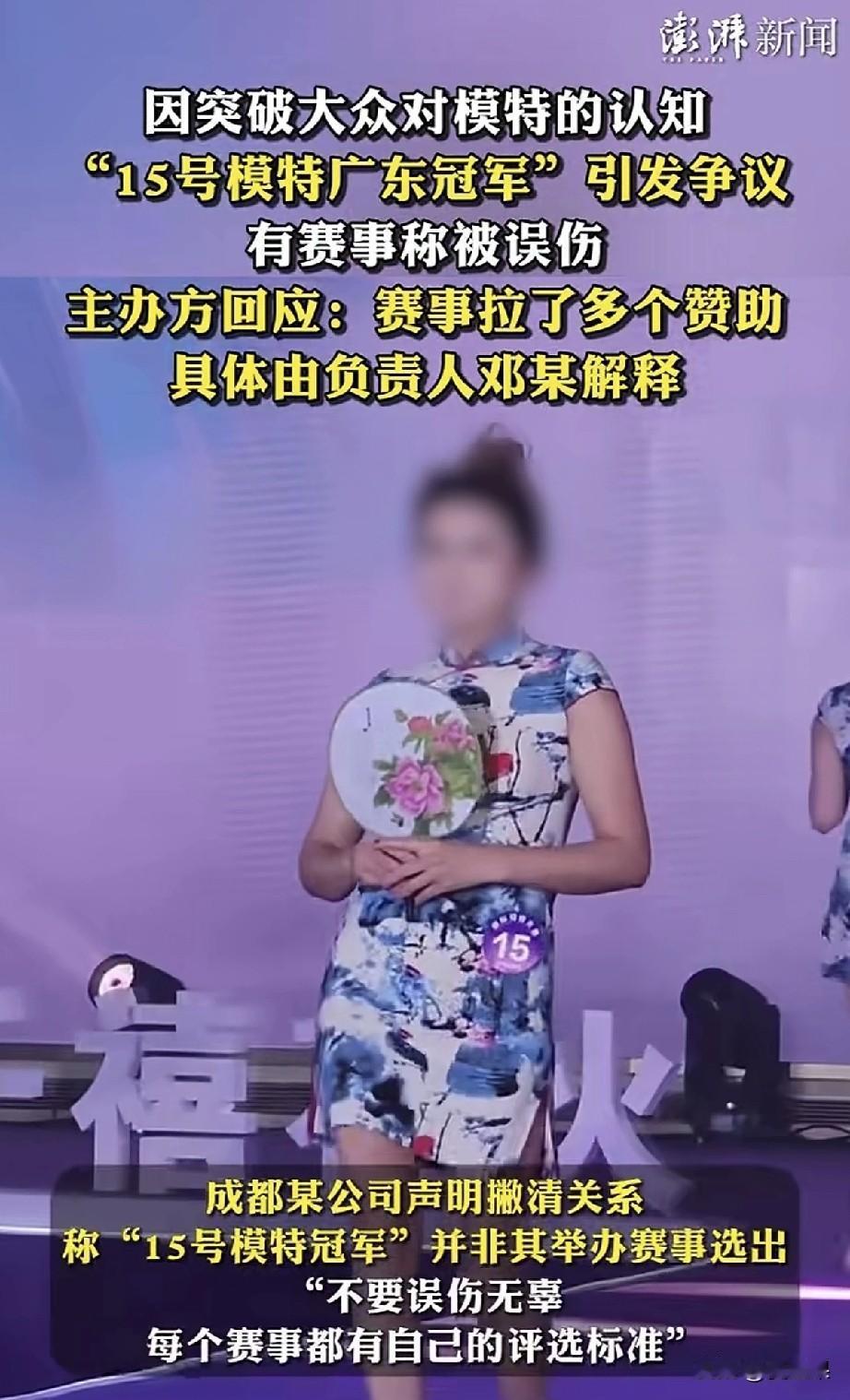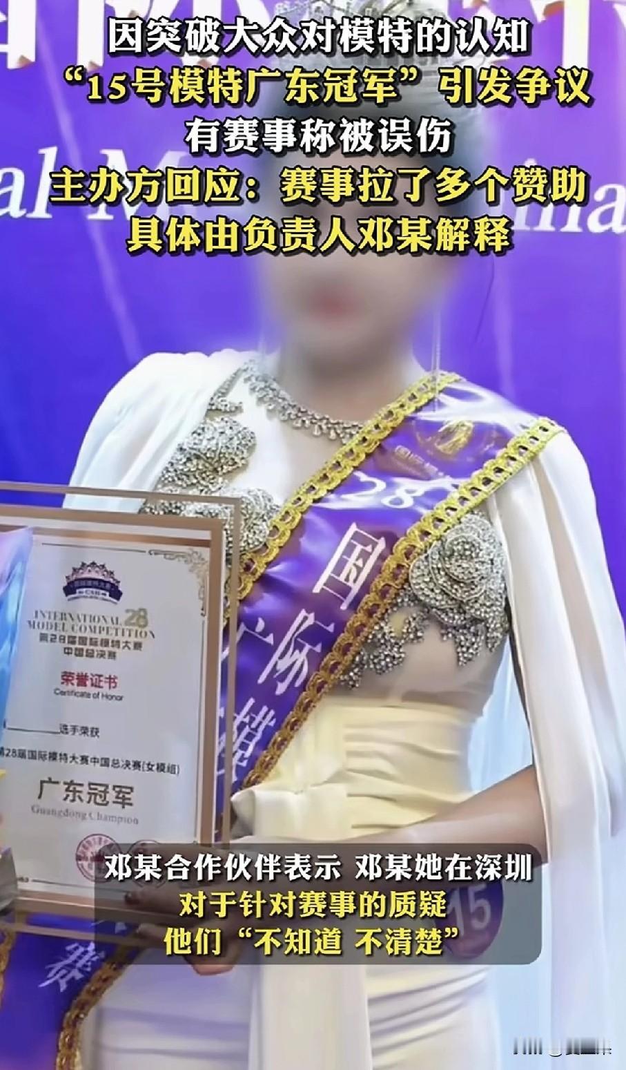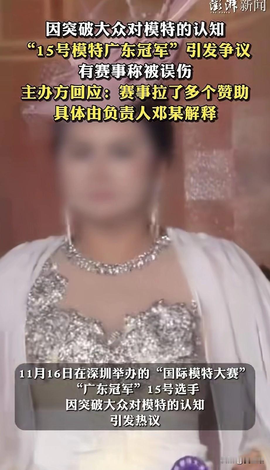 难为评委了, 广东赛区, 面对台上参加国际模特大赛的珠圆玉润的参赛选手, 评,还是不评? 结果是必须得评,还得是冠军。 也许有人说得对, 每一届赛事都有自己的评选标准,不一而足,我这届广东赛区,就是这样的标准,能怎么样吧? 唐朝以胖为美,谁说就不行了? 还要为这些参赛选手鼓掌,因为她们有勇气。人生每个阶段有每个阶段的美,千人眼中有一千个哈姆雷特。 现在模特比赛都是一个标准,太单一了,就像那些服装模特,也不能只有那些大长腿,因为平常人平时穿不了, 那为什么就不能选出代表素人的模特呢? 她们展示的衣服,可能更受大众欢迎。 但主要是吧,这些评选出来的将来是要参加全国甚至国际赛事的, 那规则不是广东赛区决定的,到时候也会全军覆没呀。 我突然明白了这次评委的意图,有什么为难的? 让怎么评就怎么评,咱不得罪人,参加全国甚至国际被淘汰,总不能说是我们评委的责任。 有没有责任被人诟病是肯定的,现在就会有人说,泱泱大省,选不出来模特了不是? 所以主办方出来甩锅了:都是具体负责人某某人负责的,有事儿找她。 哎呀,真是难办。