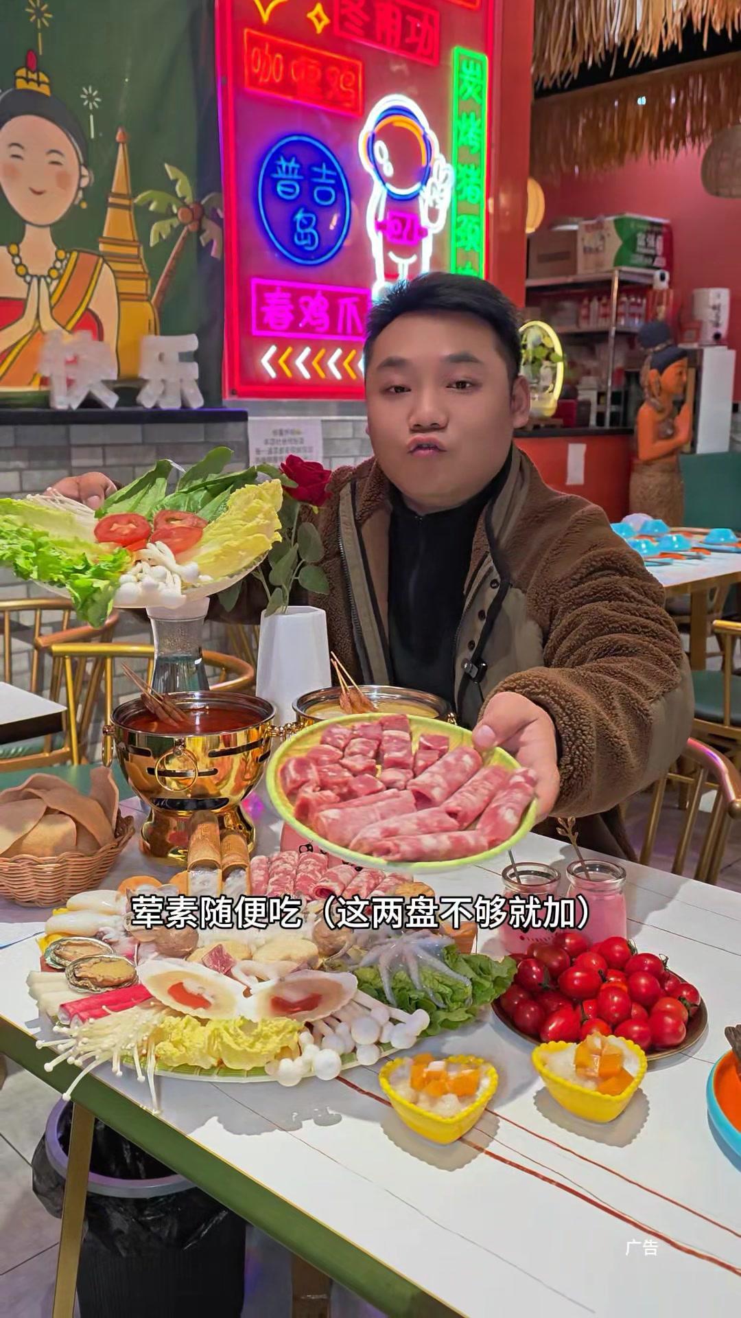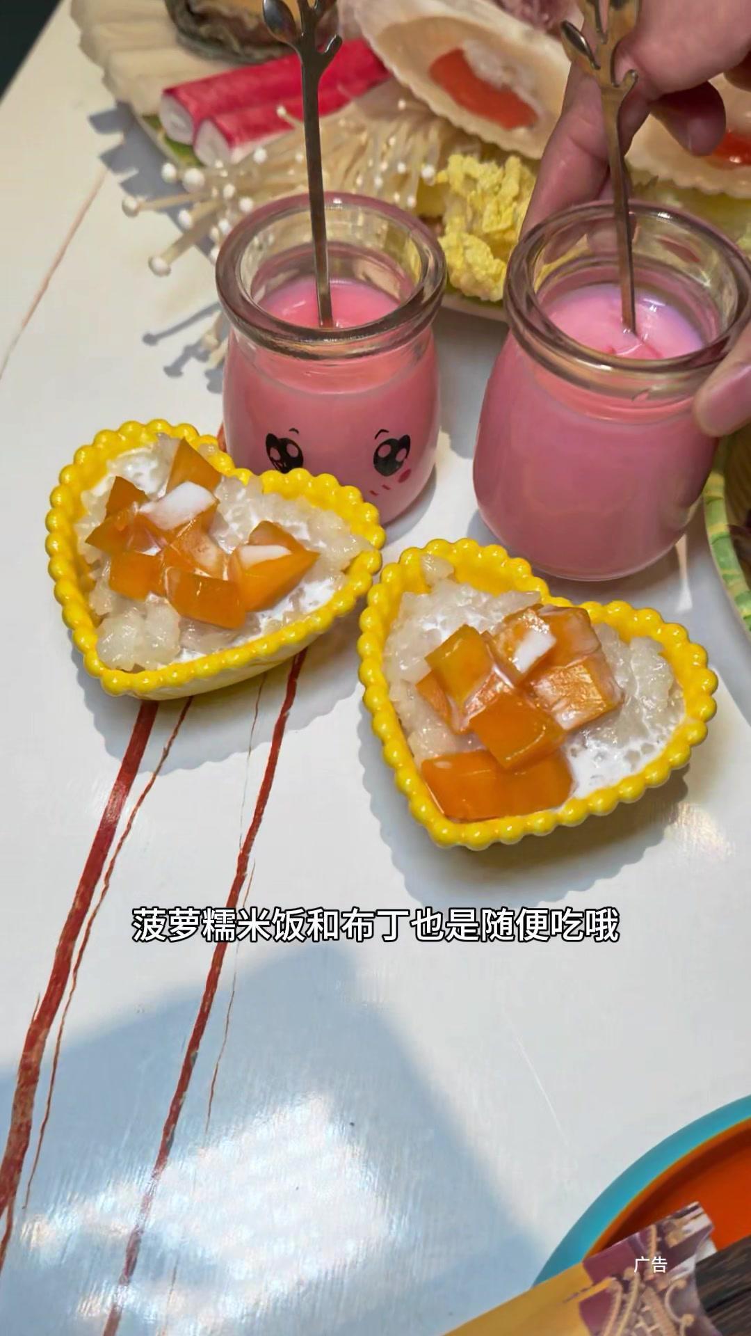 这里有足足12种海鲜,荤素不限量,随便拿随便吃,带娃来也不用担心不够吃。 9块9就能get一只大虾,个头饱满新鲜,泰式风味十足。 5种锅底可以选两种,搭配海鲜吃超满足。 还有菠萝糯米饭和布丁,都是无限续的甜品,饭后再来点甜的,幸福感拉满~ 128元能吃到这么一大桌,不管是情侣约会还是闺蜜小聚都合适,赶紧约上朋友冲!