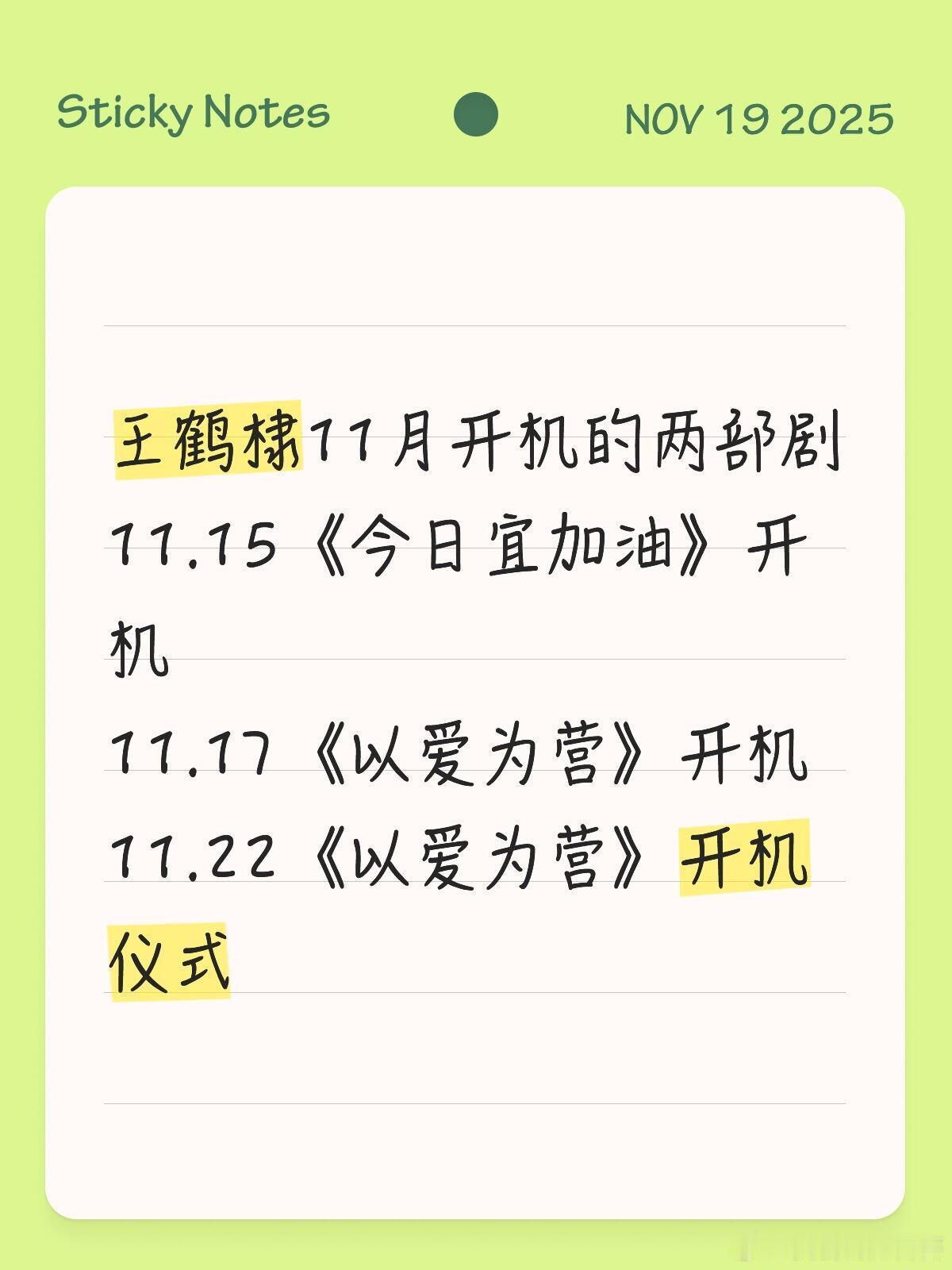 王鹤棣11月开机的两部剧11.15《今日宜加油》开机11.17《以爱为营》开机11.22《以爱为营》开机仪式王鹤棣|今日宜加油|以爱为营|