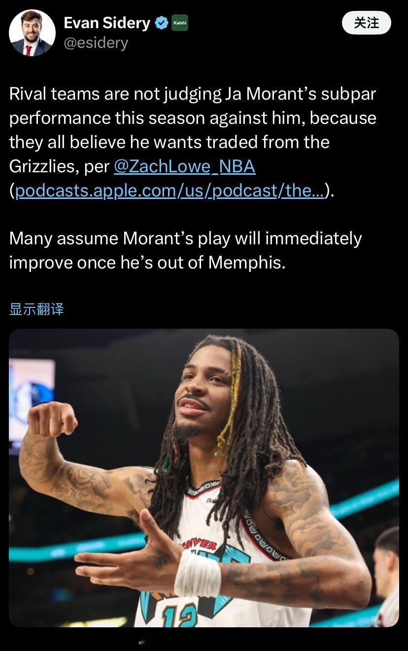 其他竞争球队并没有因为莫兰特本赛季表现不佳而对他进行评判,因为他们都认为他想离开灰熊队。许多人认为莫兰特一旦离开孟菲斯,他的表现就会立即有所提高。