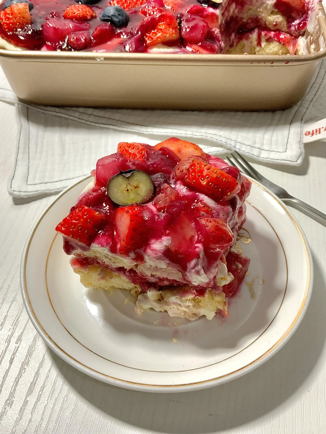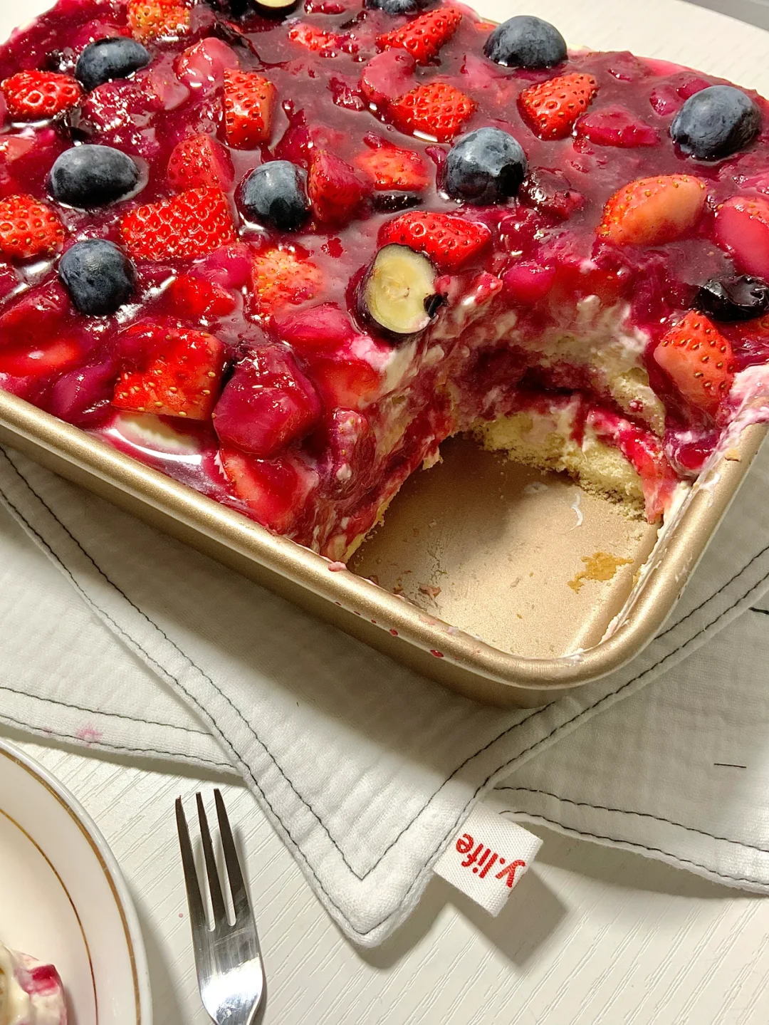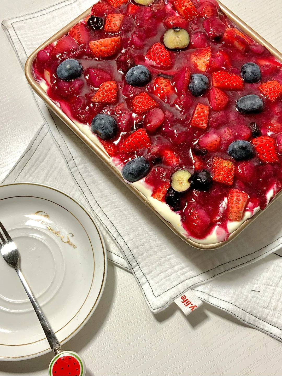 4⃣️第二次涂完草莓酱后放入冰箱冷藏4个小时,拿出后装饰莓果✅