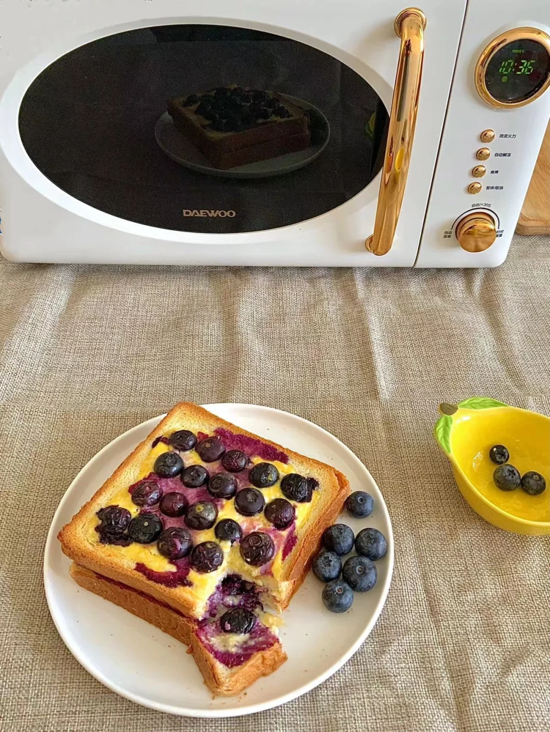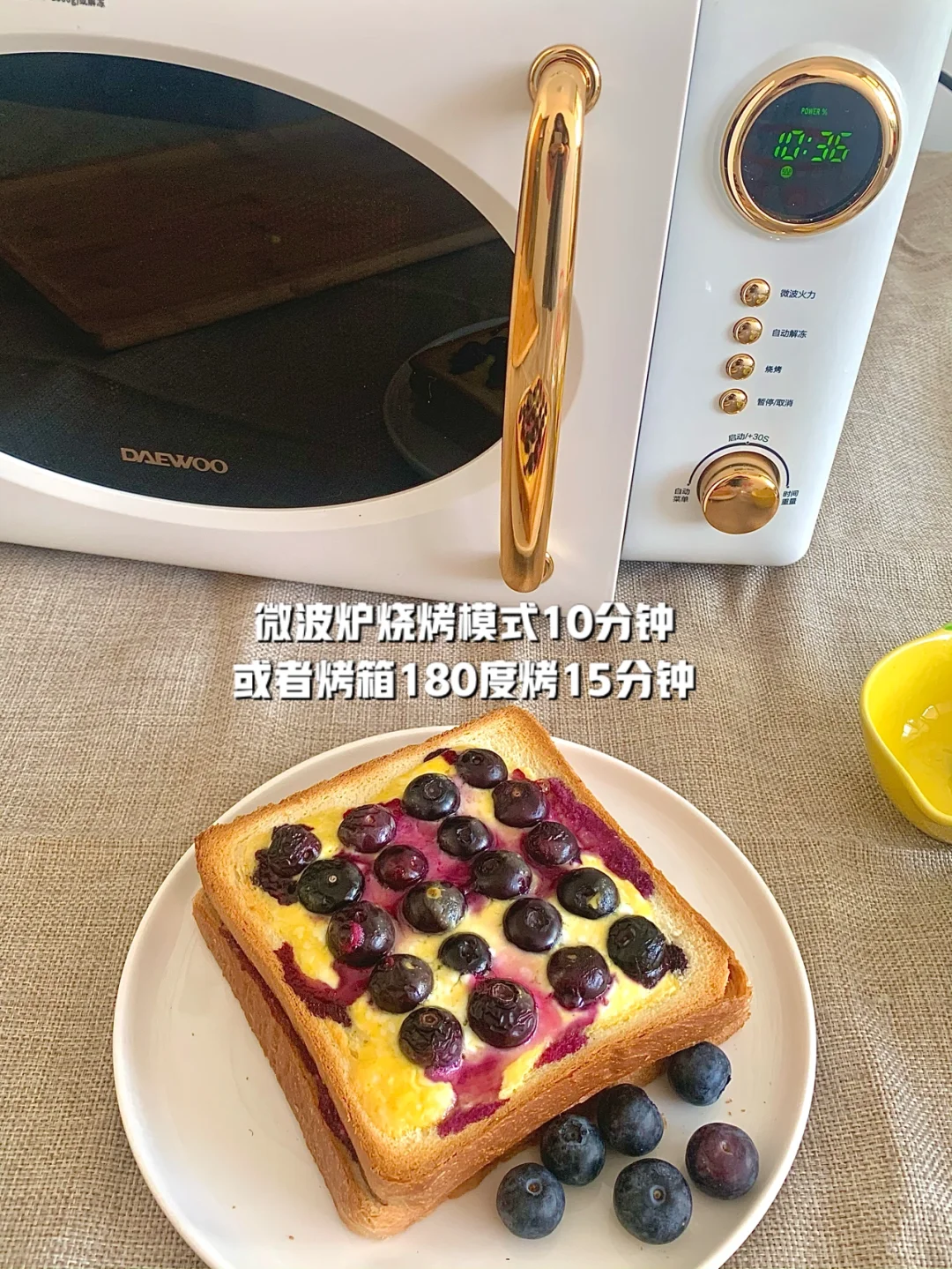 香香酥酥又嫩滑的蓝莓乳酪吐司完成啦🫐一口就爆浆🥺不要太好吃🥺能烤烧的微波炉简直不要太方便❣️😉👍还用它做了个爆米花🍿️我是被大宇微波炉的颜值给迷住了~复古风的设计~很有高级的感觉~放在餐桌上美滋滋🥺烧烤功能没事烤个肉串烤个鸡翅美滋滋啊❣️❣️❣️❣️