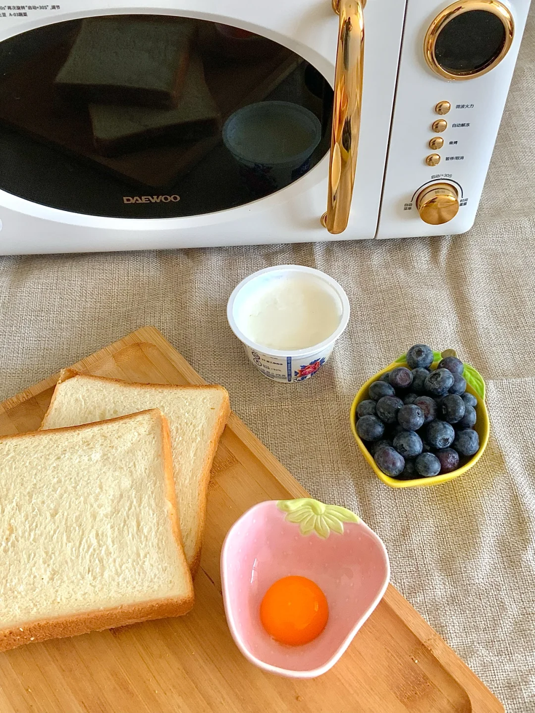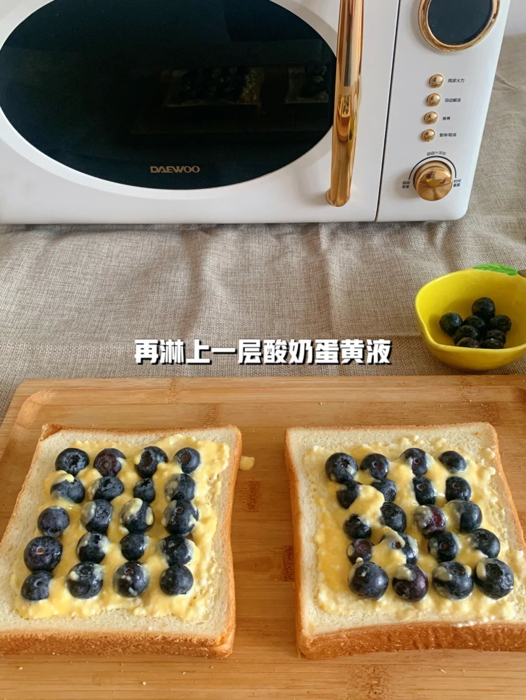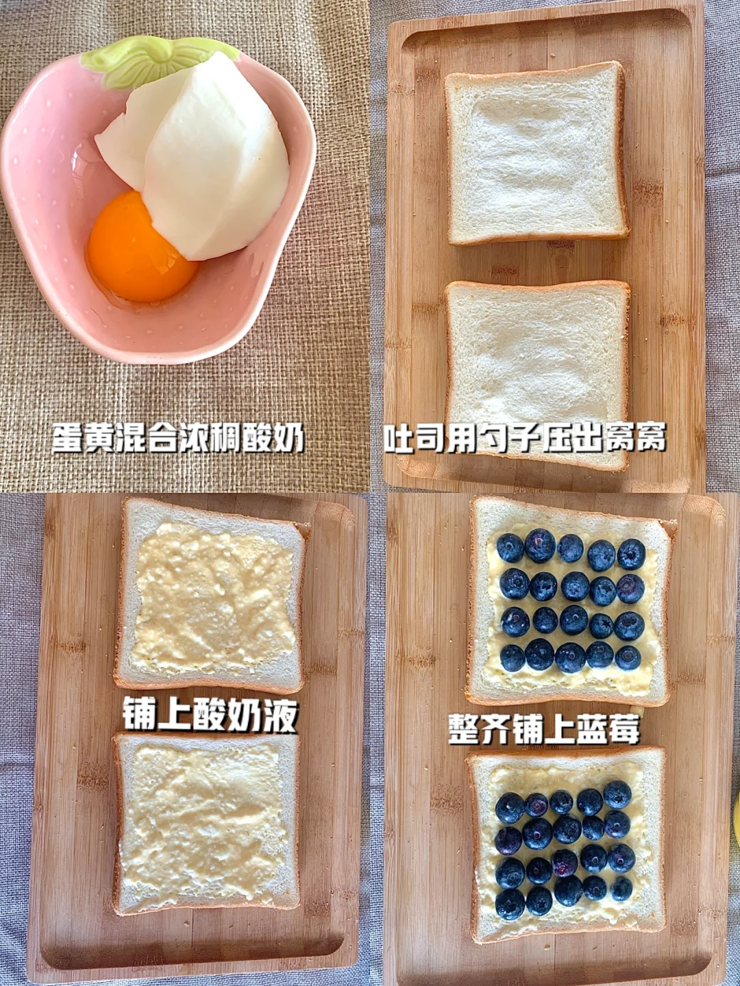 蓝莓、吐司、蛋黄、浓稠酸奶
