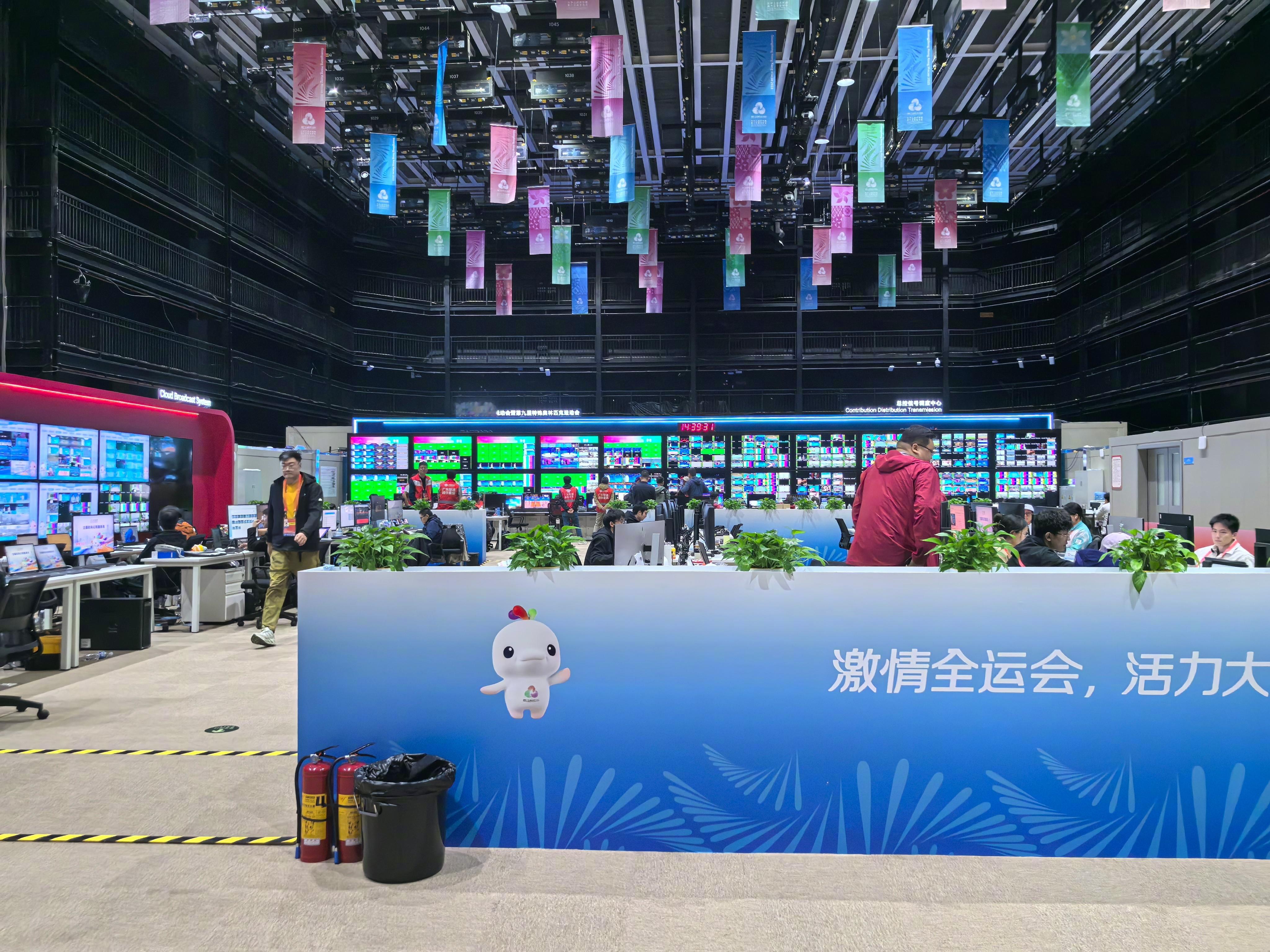 来看看全运会的IBC International Broadcasting Center。这是中国联通承建的广州主IBC,还有三个副IBC分别在香港、澳门和深圳。这次IBC的特点是采用了4K云转播技术,广州一个云,香港一个云。广州云和香港云之间的带宽是400Gbps,延时毫秒级,人类感觉不出来。为什么速率这么快?因为香港云和广州云之间的通信链路走的不是公网,而是光纤专网。作为通信专业人士,我觉得这种信息资源能力是国际顶尖的,下届国际奥运会的国际广播中心如果不放在中国,也未必能达到现在的程度。