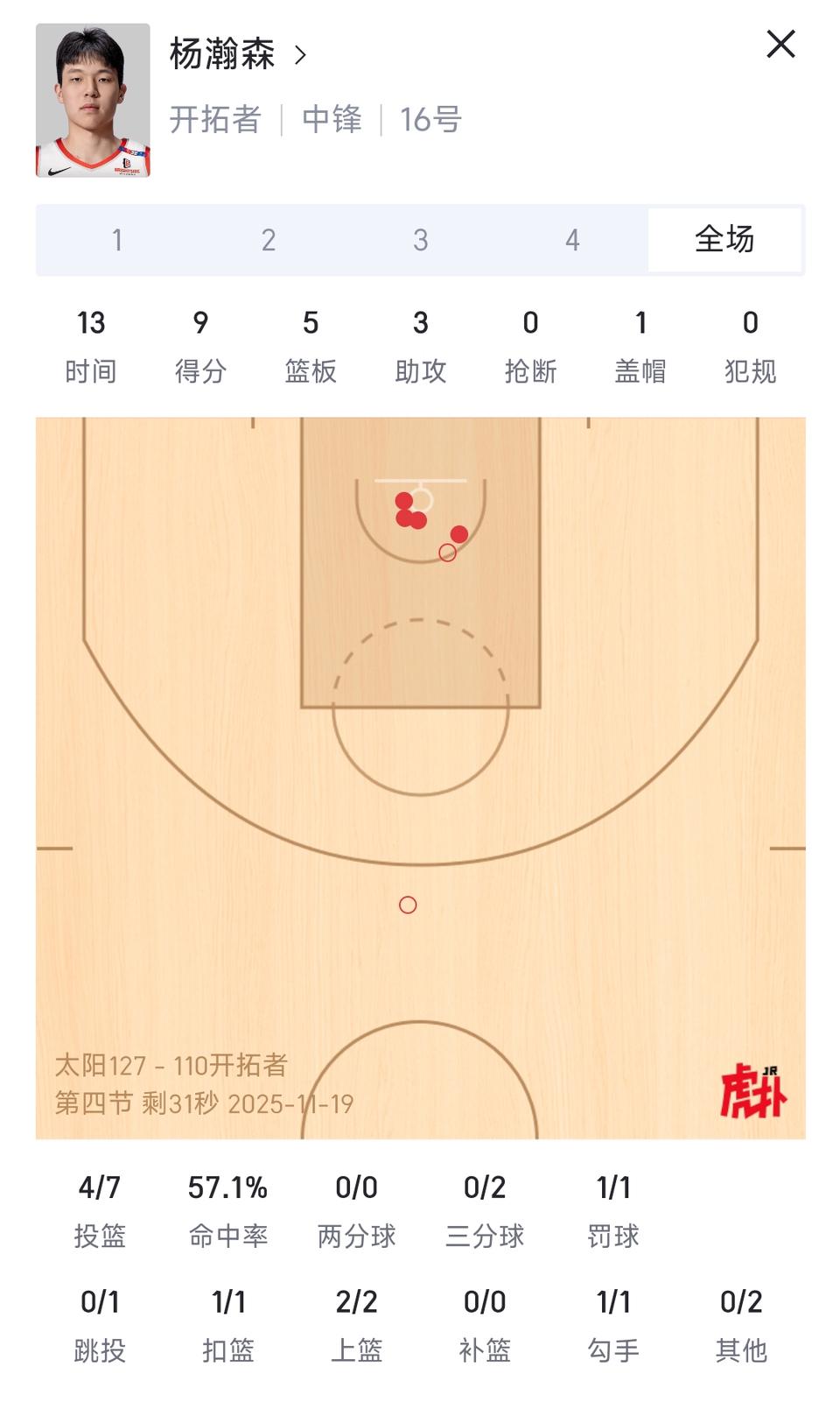 杨瀚森13分钟就能9分5篮板3助攻。 要是打40分钟,也能20多分了。 NBA打不了,发展联盟他还是能打。 希望多出场,让数据更好点,开拓者才会召回他呀!!![得意]