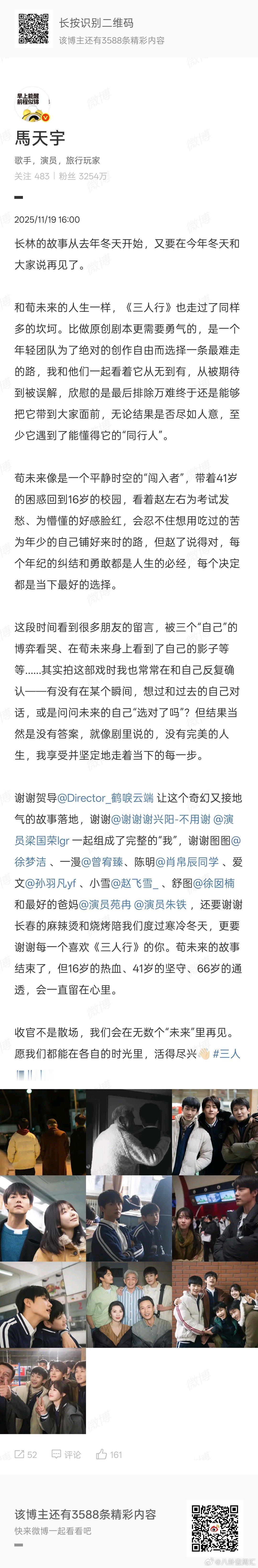 马天宇发长文告别三人行,收官啦!!