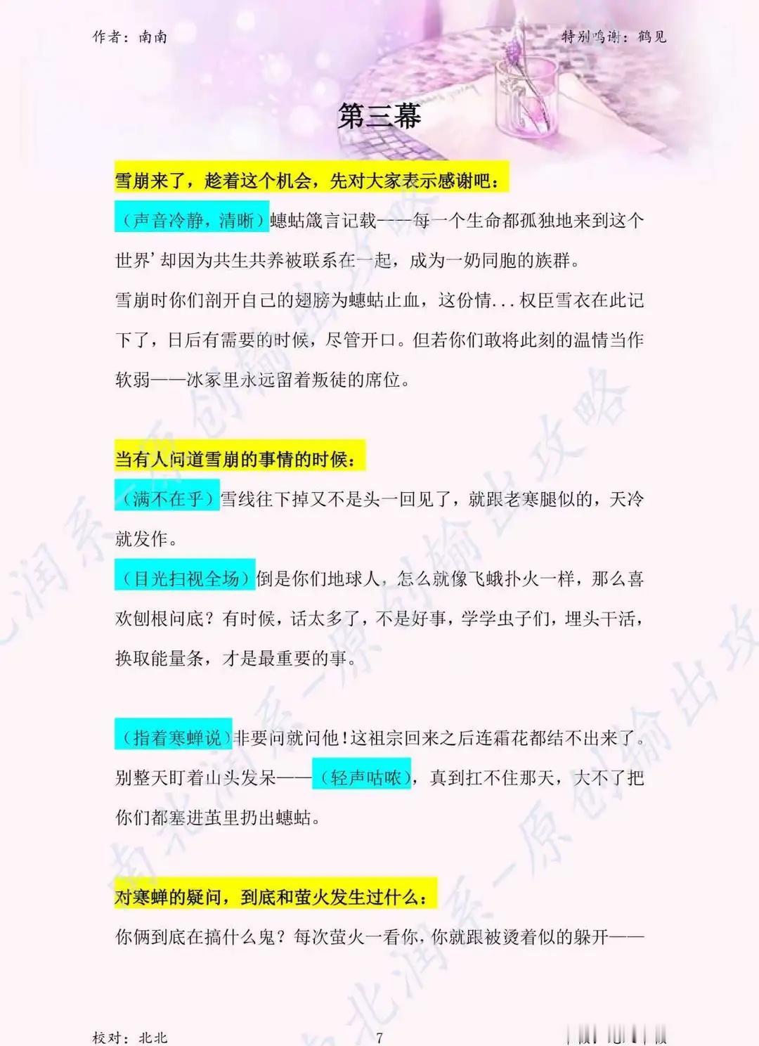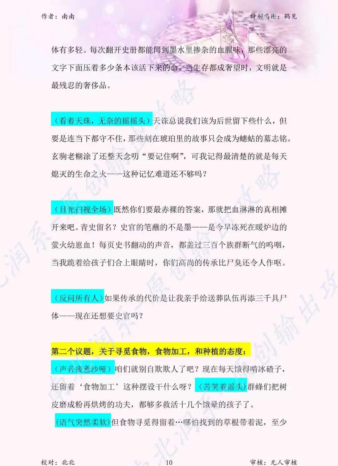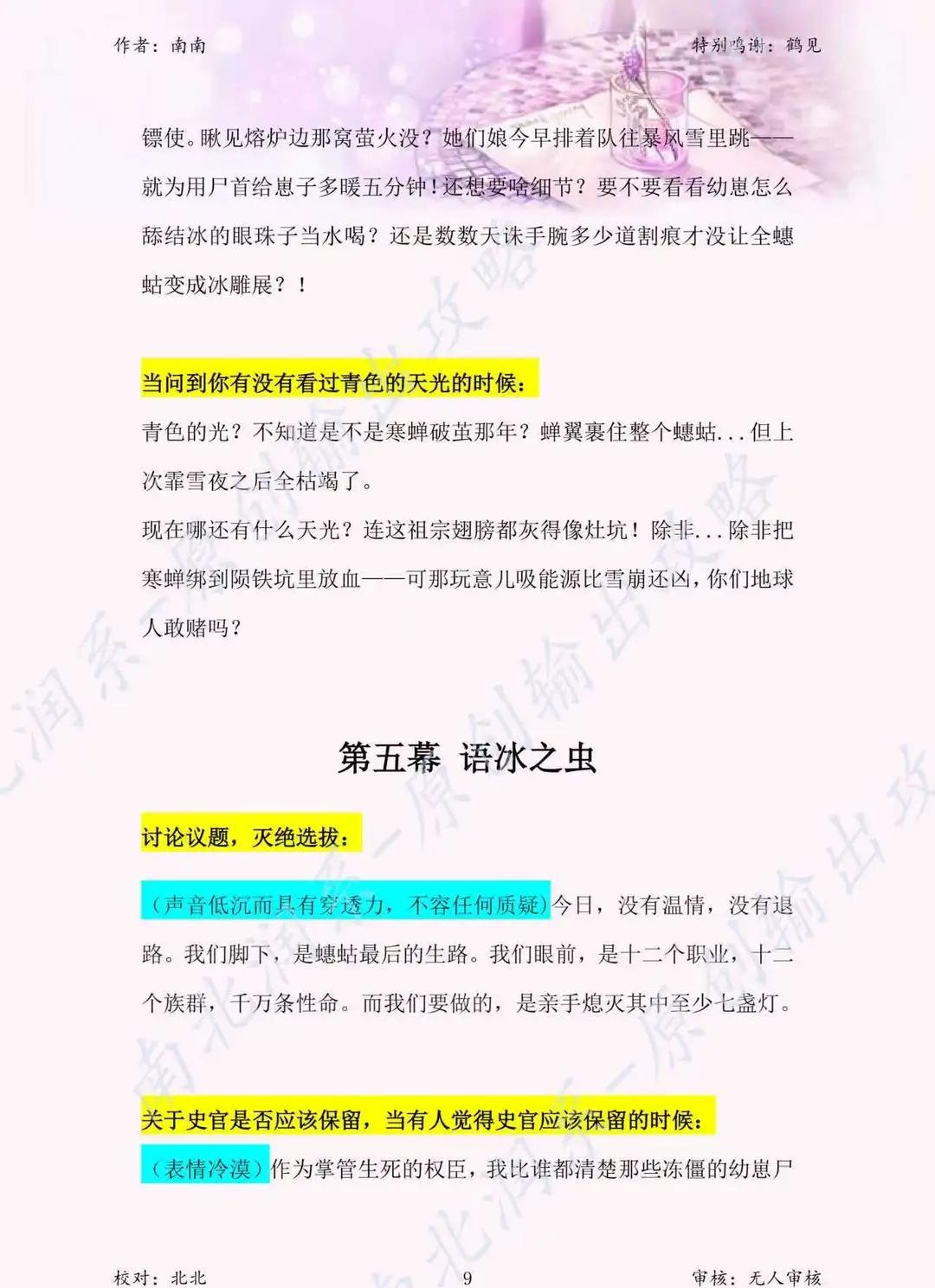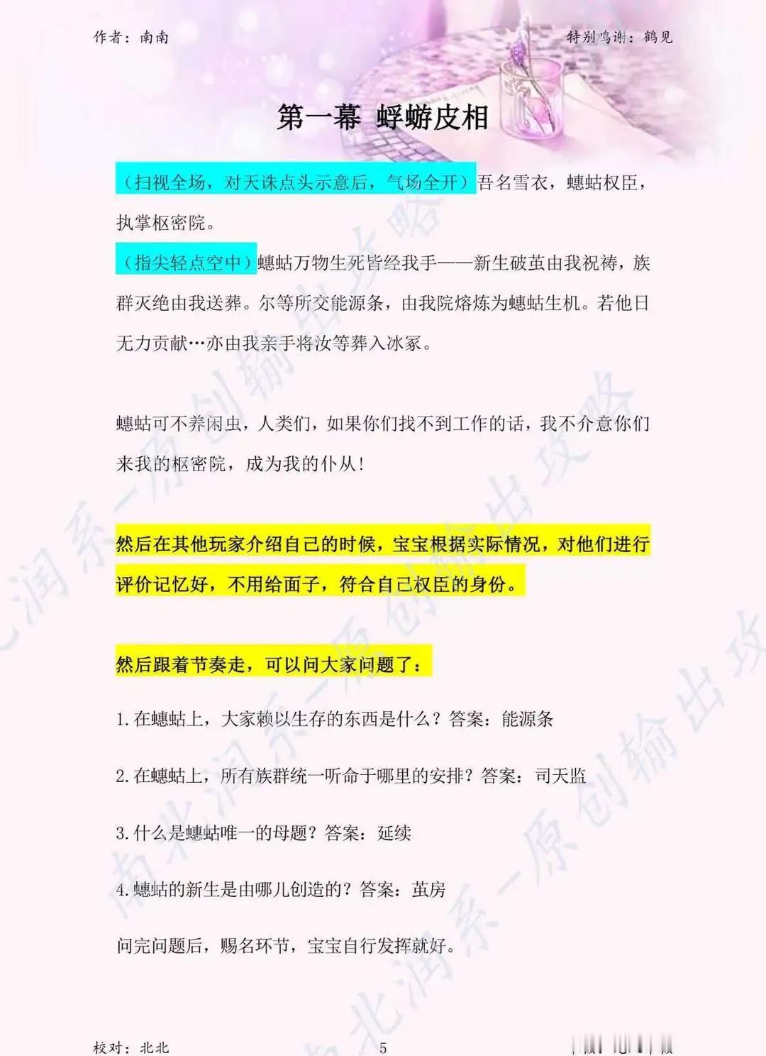 蟪蛄春秋 雪衣 输出攻略 雪衣——一句话总结 外冷内热的冰山大总管,嘴硬心软的权臣老妈子 表面身份:蟪蛄世界的枢密院权臣,掌管能源分配与生死,气场强大,说一不二。 内核本质:一个用冷酷面具保护柔软内心的重度“傲娇”。她比任何人都关心蟪蛄的子民,但表达方式永远是威胁、命令和“公平交易”。 给宝宝演绎雪衣的核心要点 1. 气场要足,架子要端住 开场即巅峰:第一幕出场就要镇住场子,扫视全场,语气冷静而充满威慑力。“吾名雪衣”这句,要说得慢而有力,让所有人知道你是这里的老大。 权臣的傲慢:在其他玩家介绍时,你的评价可以毒舌一点,挑剔一点,符合你“看不惯闲人”的设定。不用怕得罪人,这就是你的人设。 2. “嘴硬心软”是精髓,要演好反差萌 这是雪衣最核心、最动人的地方。记住一个原则:她做的永远比说的温柔,关心永远用“威胁”来包装。 举例1:她让大家戴仆从令,说的是“生死由我掌控”,但内心OS是:“戴上它,我才能名正言顺地保护你们。” 举例2:雪崩后感谢大家,前半句是“这份情我记下了”,后半句必须立刻接上“但若你们敢当作软弱……”,把温情立刻用狠话掩盖住。 关键:在说狠话的时候,语气可以稍微有一点点的停顿或细微的颤抖,让玩家能捕捉到你坚硬外壳下的裂缝。 3. 情感输出时,层次要分明 雪衣的情感是逐渐崩溃……啊不,是逐渐释放的。前期压抑,中期挣扎,后期爆发。 前期(1-4幕):保持权臣的冷静和讽刺。即使说到严峻现状,也是用一种“陈述事实”的疲惫口吻,而不是哭哭啼啼。 中期(5幕):“灭绝选拔”是重头戏。 这是你第一次大规模展现内心挣扎。说到每个要被放弃的职业时,你的语言可以变得具体、画面感极强(比如“萤火用命点灯”、“小蜉蝣互让虫腿”),用这些细节来打动玩家。语气可以从疲惫、到哽咽、再到强行压抑的冷静。 后期(7-10幕):彻底破防! 到了和天诛、蜂独白的时候,把所有压抑的感情都释放出来。之前的“冷”都是为了此刻的“热”做铺垫。可以带着哭腔,可以声音颤抖,把暗恋的卑微、母爱的深沉,全部倾诉出来。剧本杀 剧本杀拼车 剧本杀推荐 情感本 剧本杀复盘 剧本杀搭子 剧本杀上车吗 剧本杀测评 线下剧本杀
