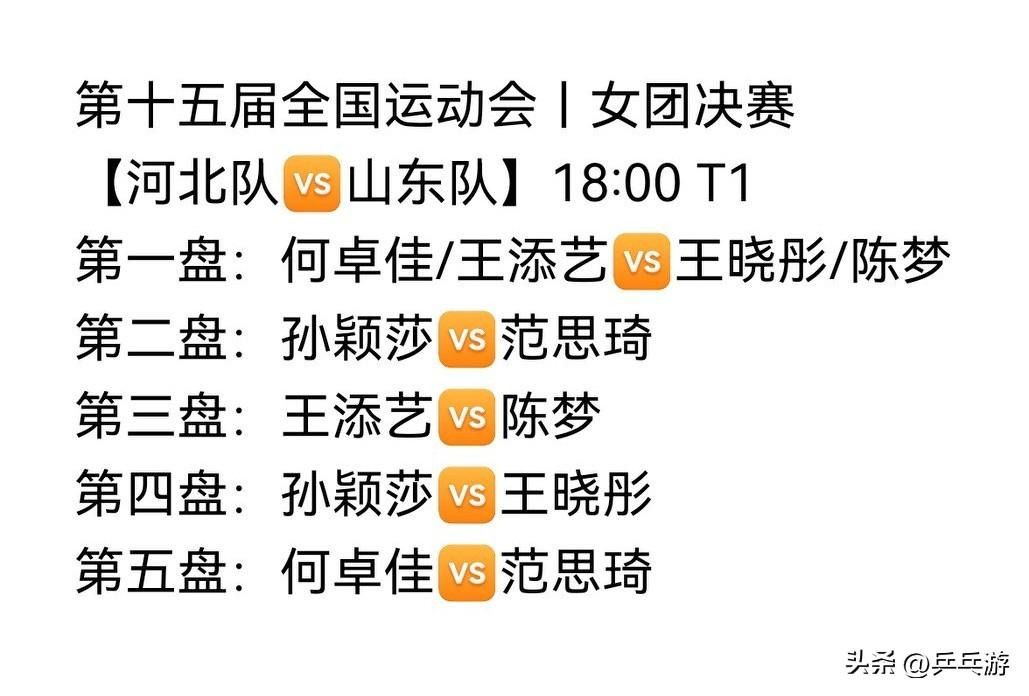 🏓全运会•乒乓球女团决赛的排兵布阵已经公布,你预测准了吗?陈梦并没有缺席! [送自己一朵花]有人猜测陈梦将缺席决赛,但陈梦就是陈梦,即便昨天再辛苦、再疲惫,都不会缺席今晚的决赛。 ~~~~~~~~~~~~ [送自己一朵花]即将于今天(11.19)18:00开始进行的女团决赛,排兵布阵情况已经出炉,具体情况见以下图片。 [送自己一朵花]您想看的莎梦对决,肯定看不到了! ~~~~~~~~~~~~~ [送自己一朵花]具体排兵布阵情况见图片