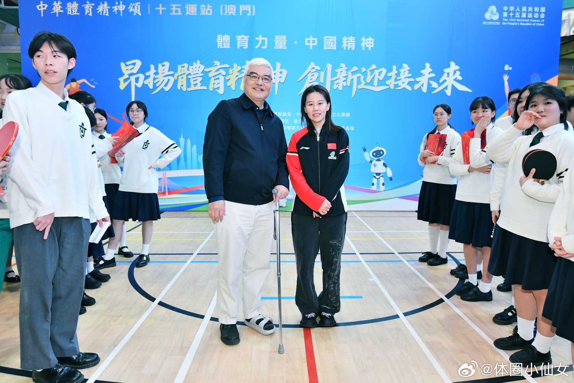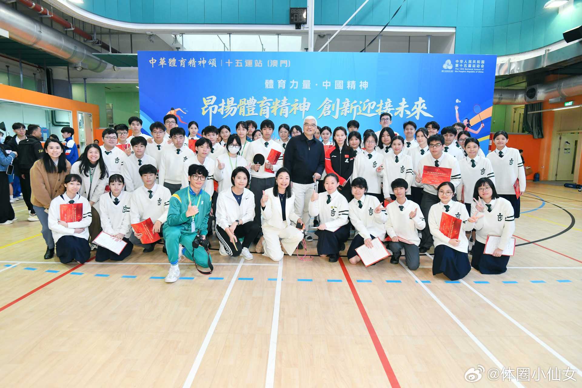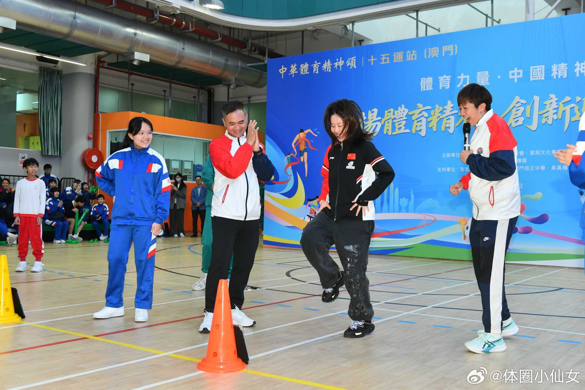 十五运站登陆澳门!国乒名将陈幸同走进活动现场,与学生代表一同解锁AI高抬腿跑,科技感拉满的运动体验超欢乐~ 手持大湾区特色大球拍互动,赛场拼搏与校园活力碰撞,让中华体育精神薪火相传!一起为十五运喝彩,为中国体育加油💪